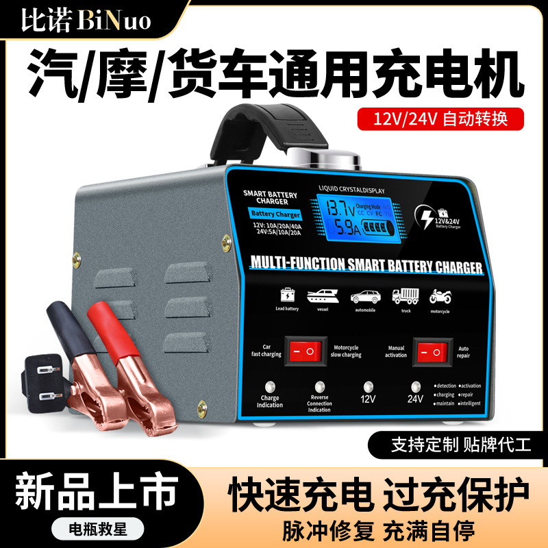 汽车电瓶充电器12V24V摩托车纯铜智能脉冲修复大功率蓄电池充电机