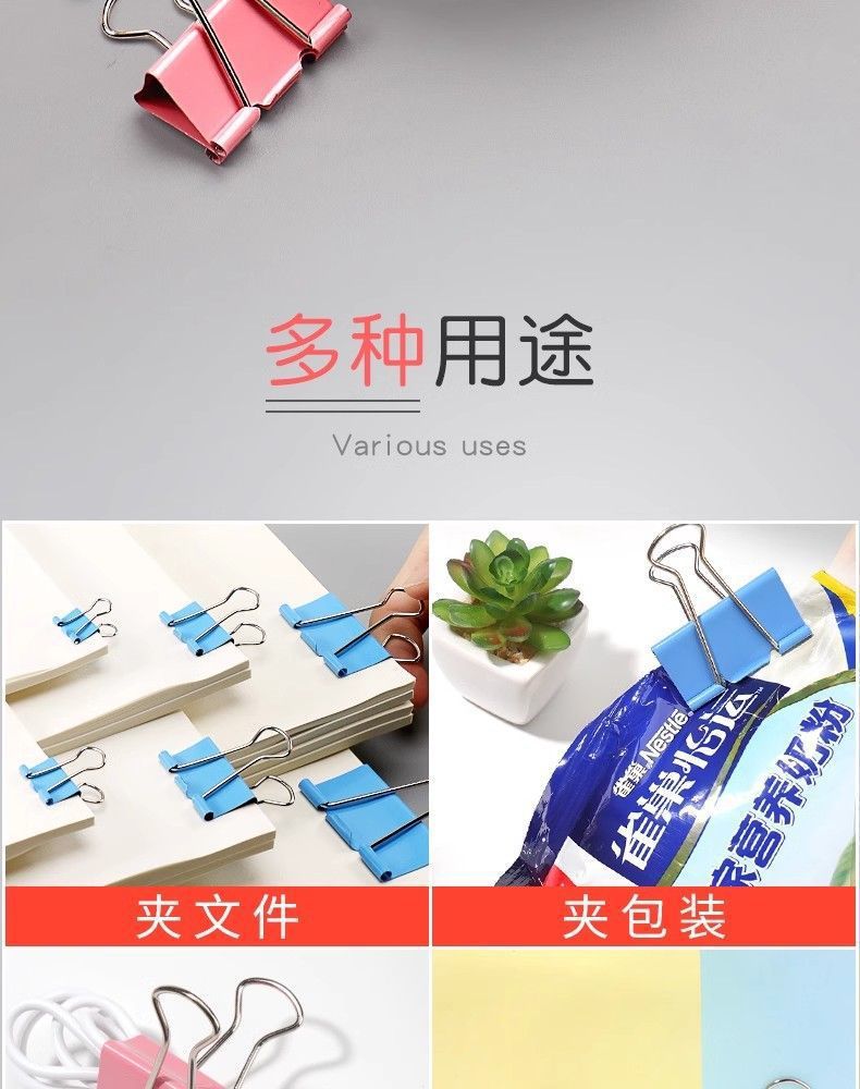 カラーバインダークリップ、小型クリップ、ファイル、試験用紙、燕尾クリップ、領収書、鳳凰尾クリップ