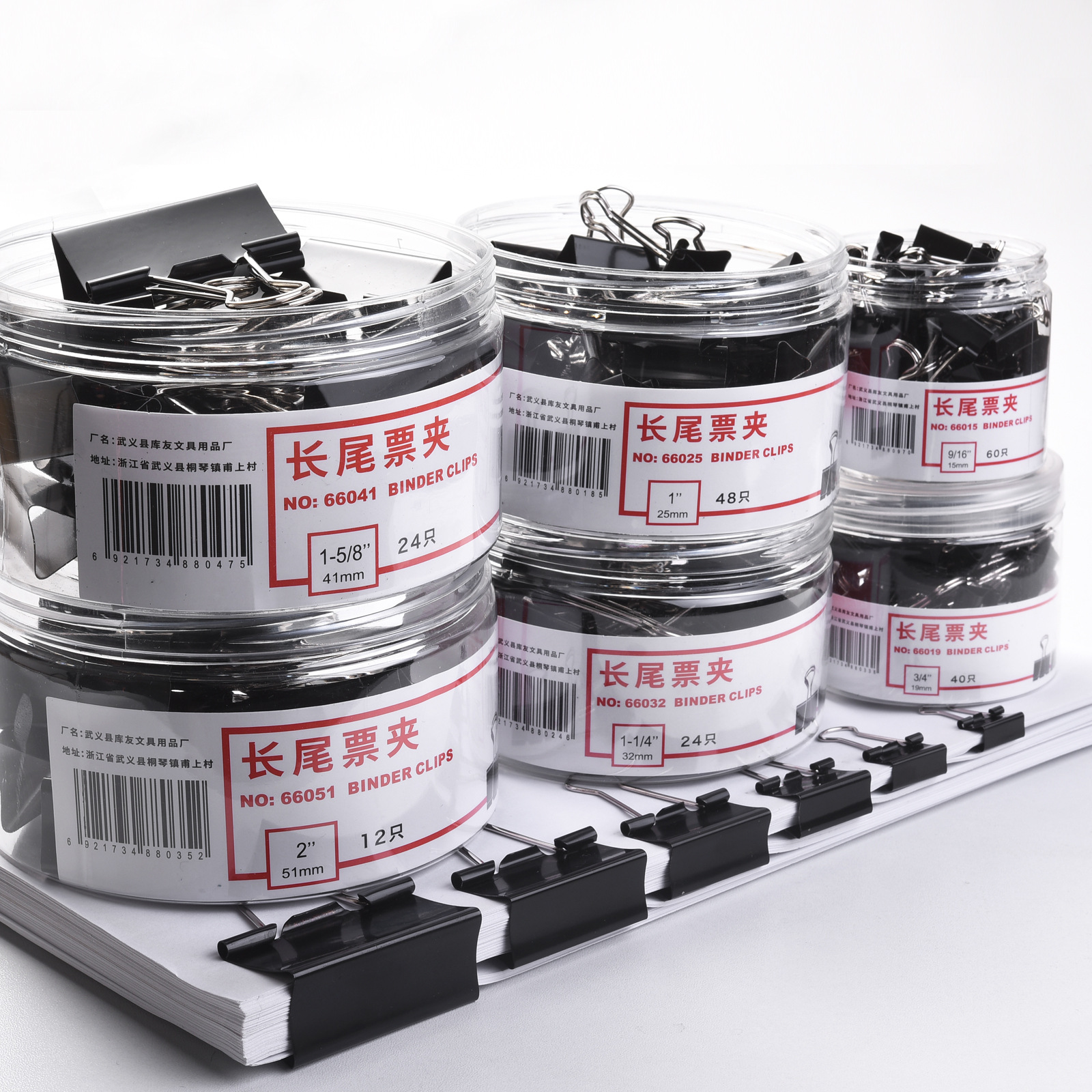 黒色の長尾クリップ、大中小サイズ、バケツ入り、チケットクリップ、財務書類、試験用紙、燕尾クリップ、オフィスクリップ