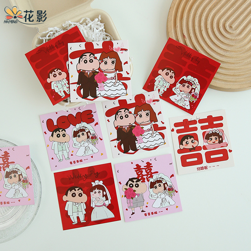 花影小新正方形卡结婚贺卡送新人喜字小卡片结婚婚礼留言祝福