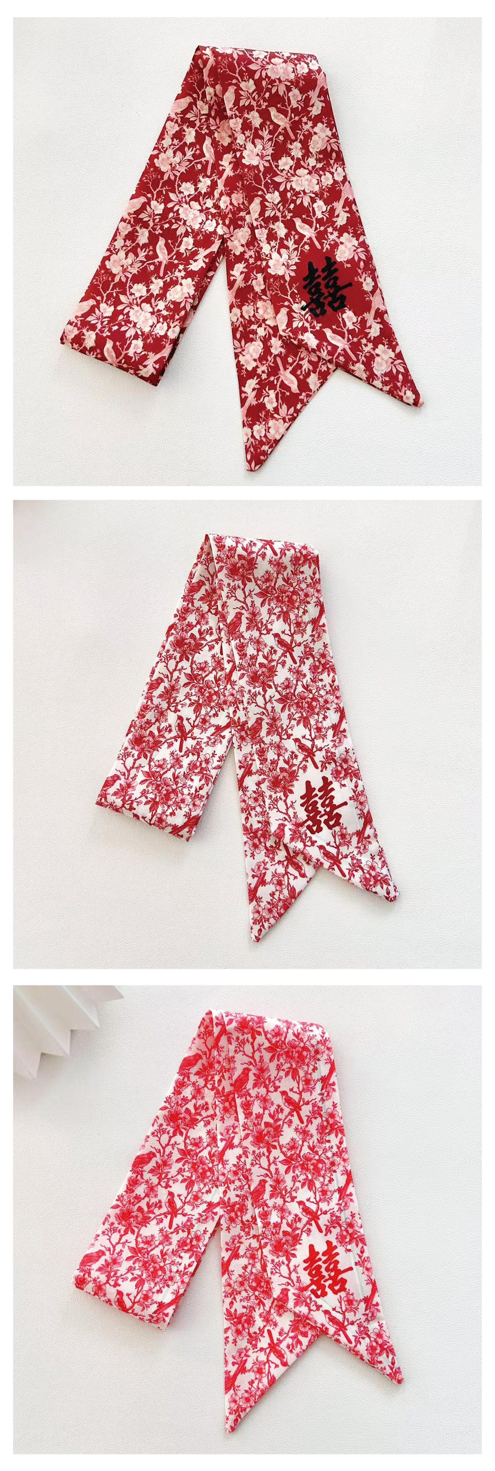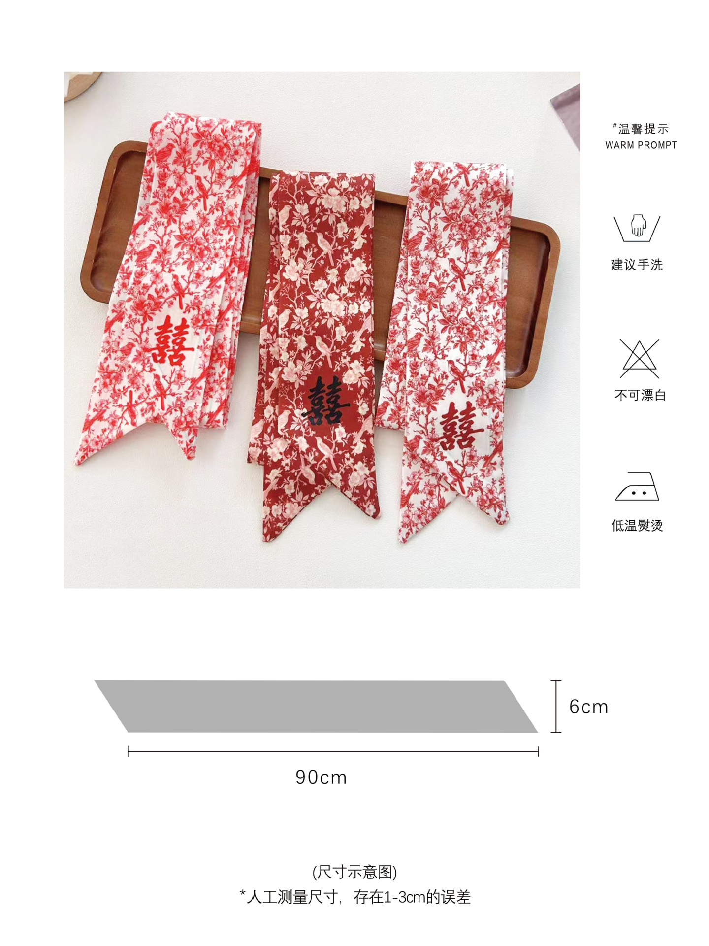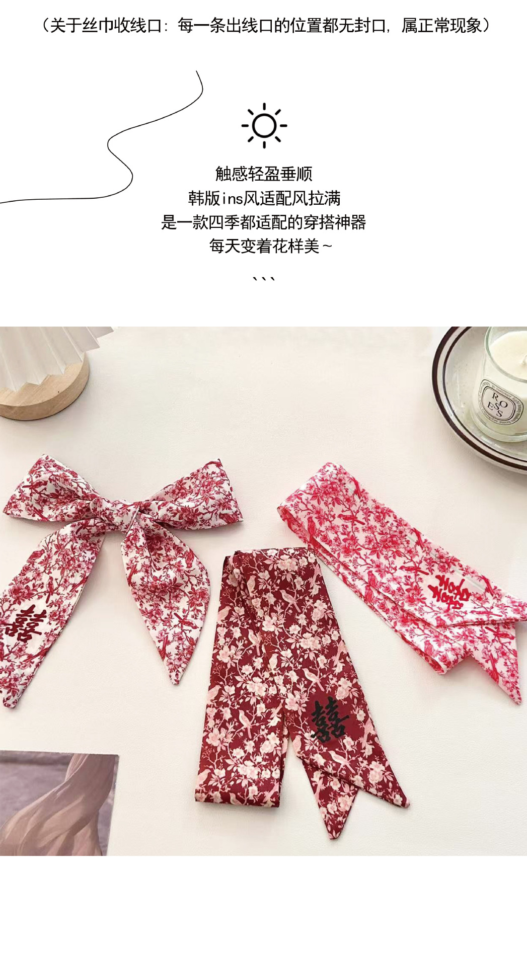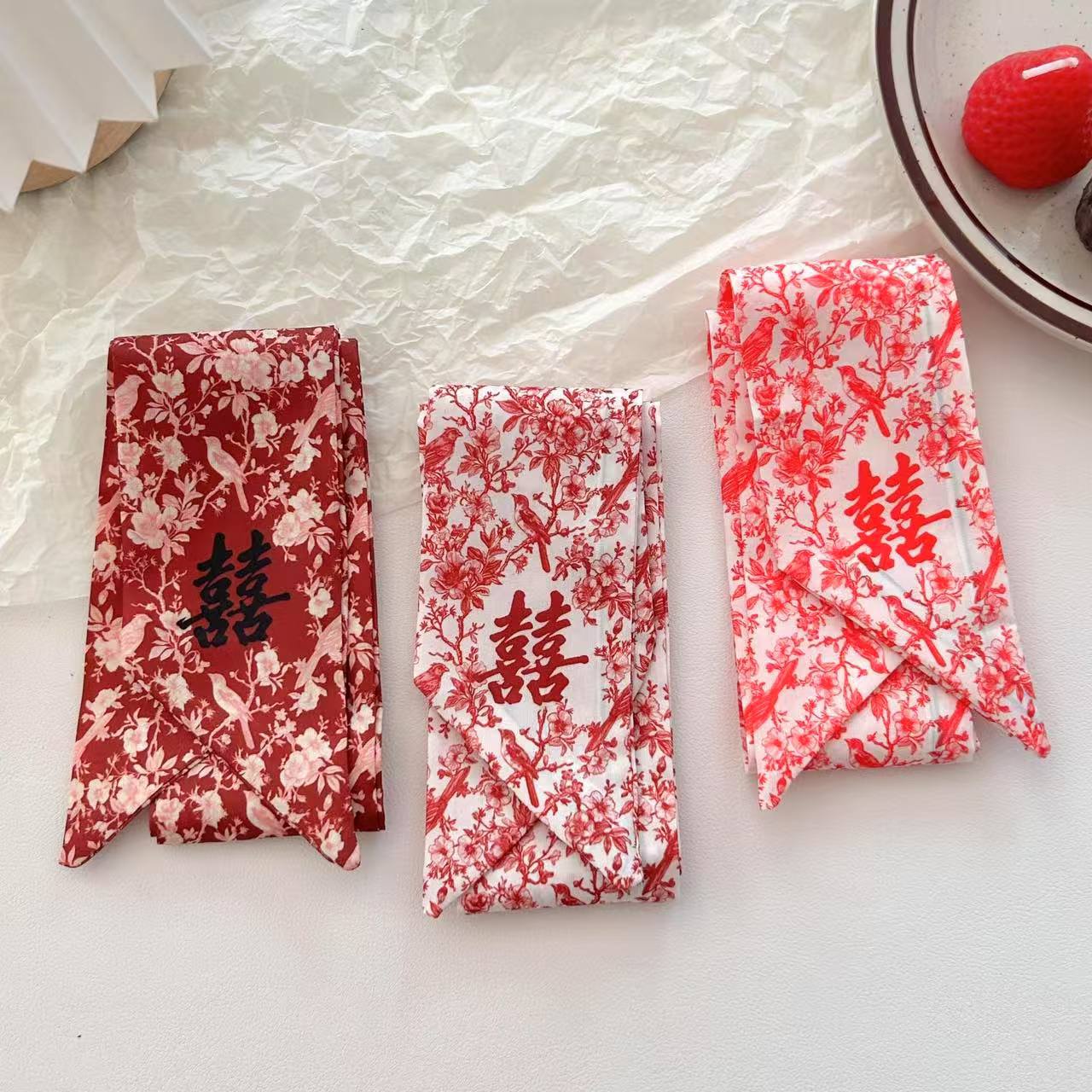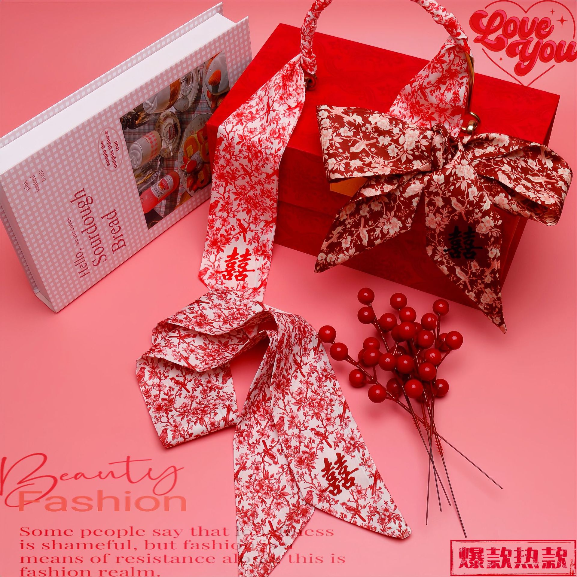 新款红色系碎花丝巾领巾喜庆伴手礼盒装饰丝带中国风扎发绑包飘带