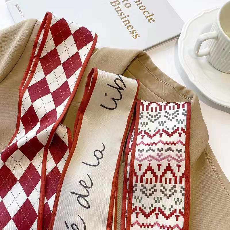 韓国版の新型26文字の砕花の細くて狭い長条の小さいシルクの巾は縛って包みのリボンを縛ります。