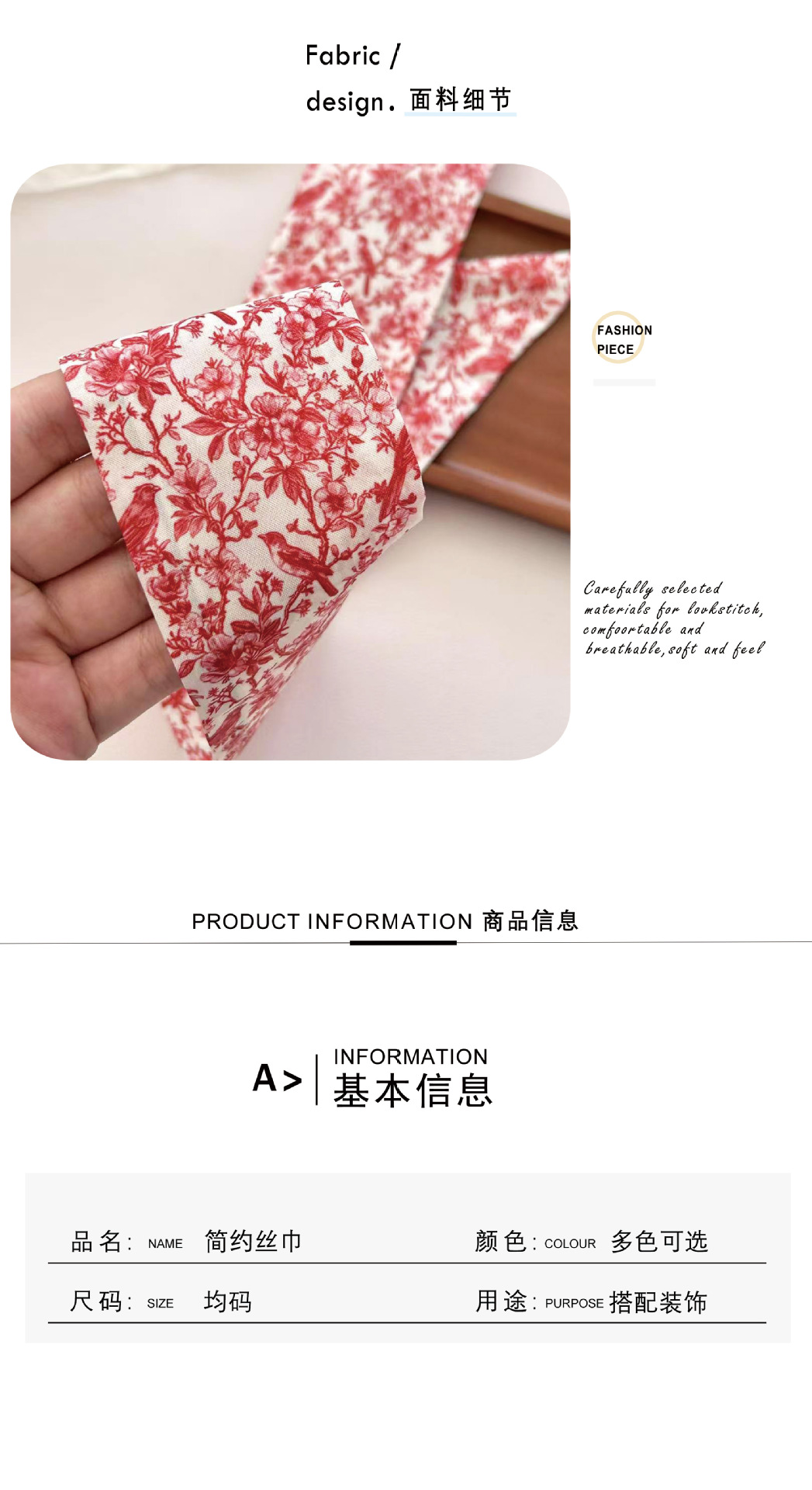フレンチレトロ風花柄シルクスカーフ、新作多用途ネックタイ、バッグハンドル装飾、おしゃれなヘアバンド、リボンアクセサリー