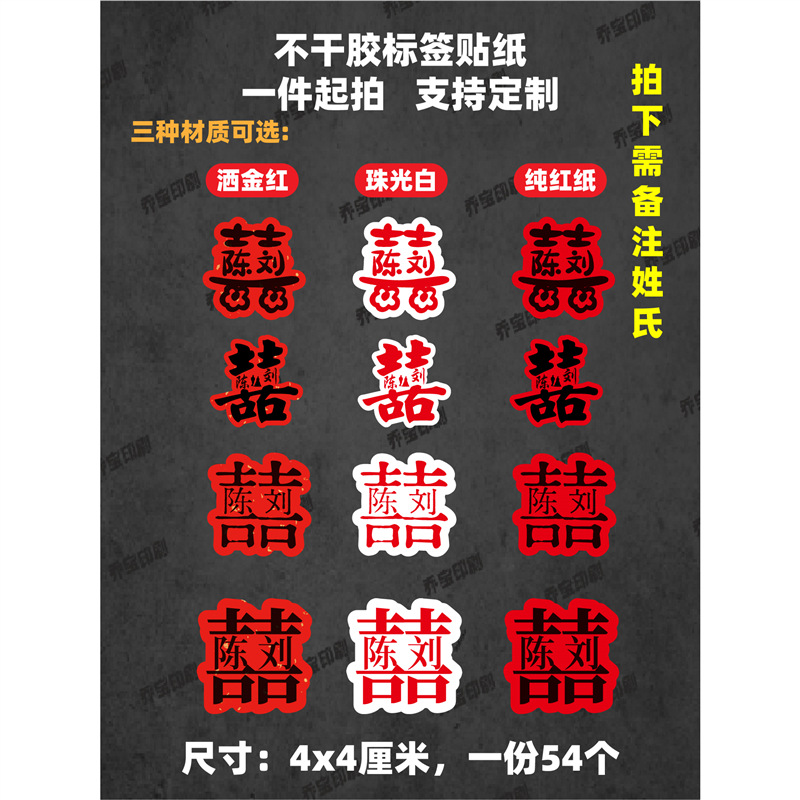 姓氏双喜囍字贴纸结婚订婚请柬专用水杯红包装饰喜糖粘贴标签