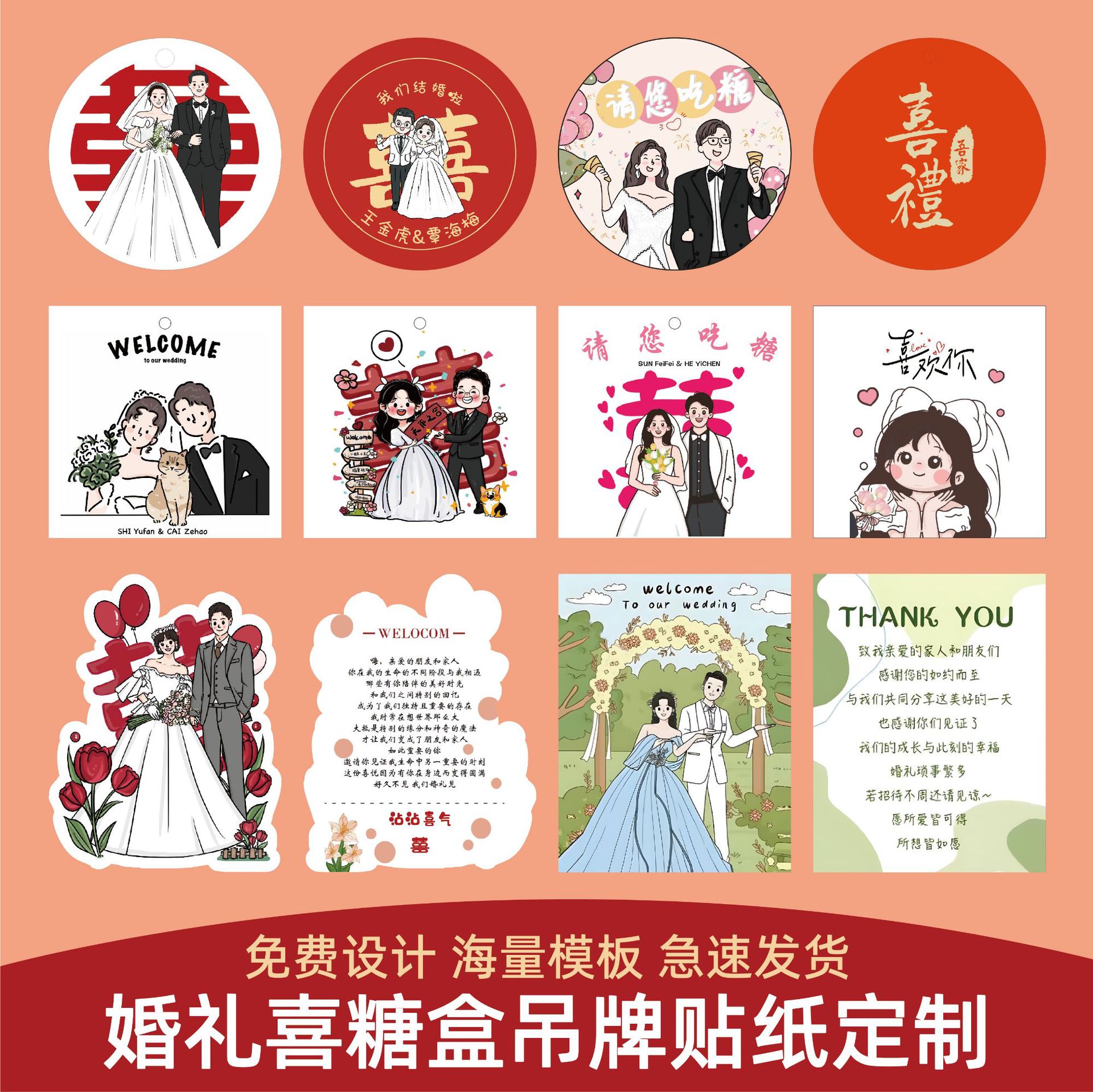 结婚吊牌定制卡通婚庆贺卡喜礼明信片喜糖盒挂牌满月伴手礼小批量