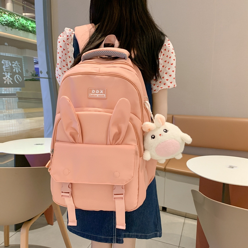 高颜值学生双肩包兔耳朵设计学生书包初中女小清新学生大容量背包