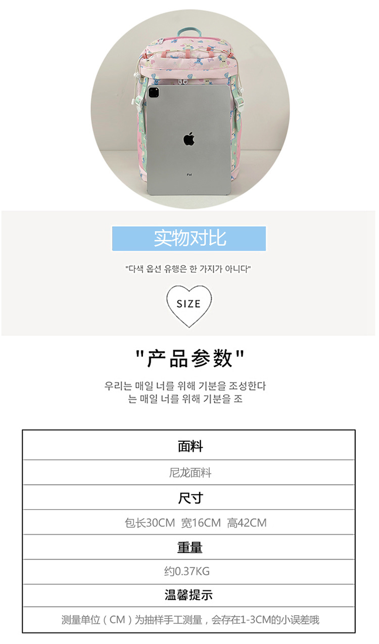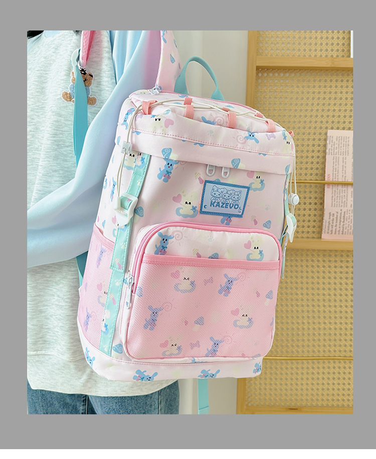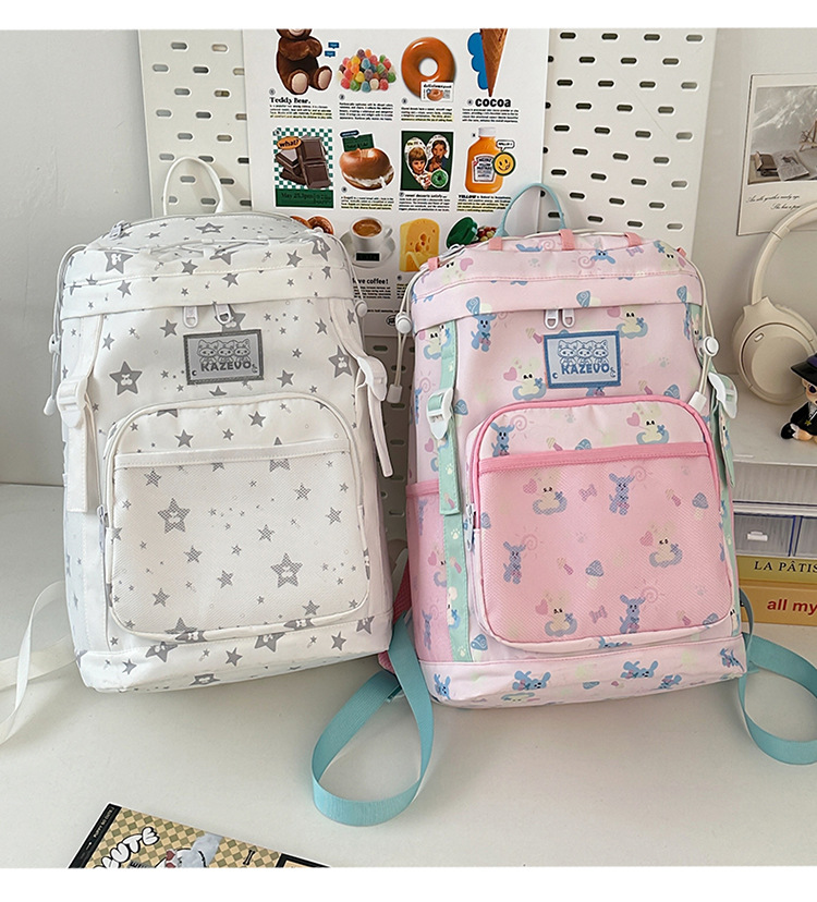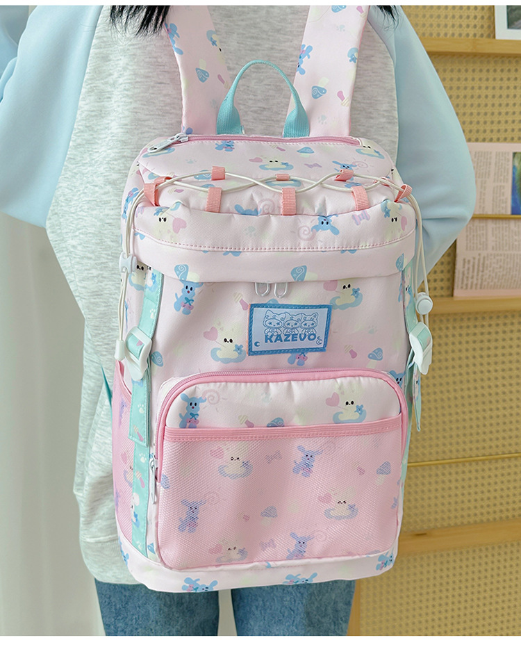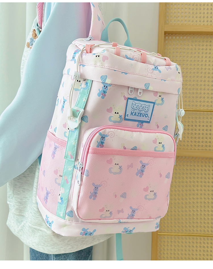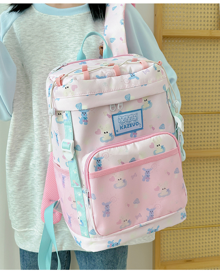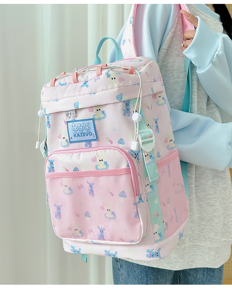 休闲简约双肩包大容量学生包可爱百搭卡通少女引闪背包新款书包