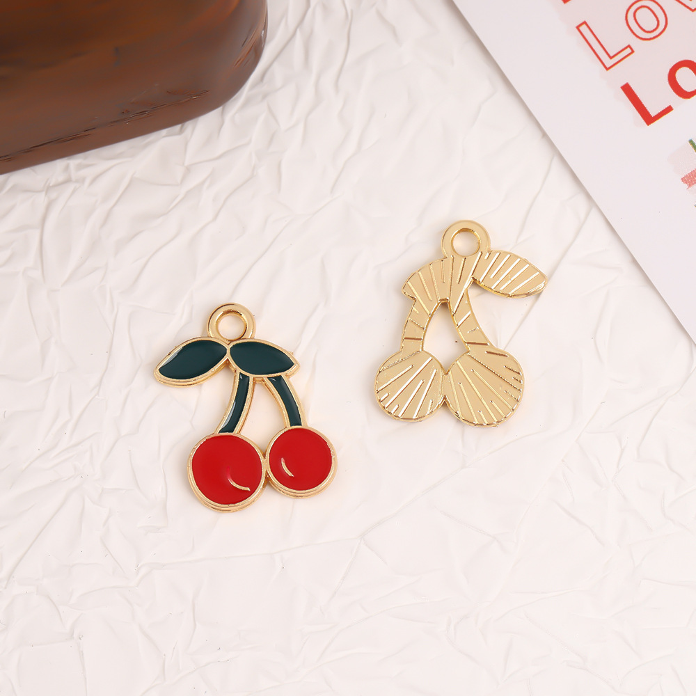 12個/バッグdiyアクセサリー滴油合金フルーツ立体チェリーブレスレットネックレスペンダントイヤリングペンダント