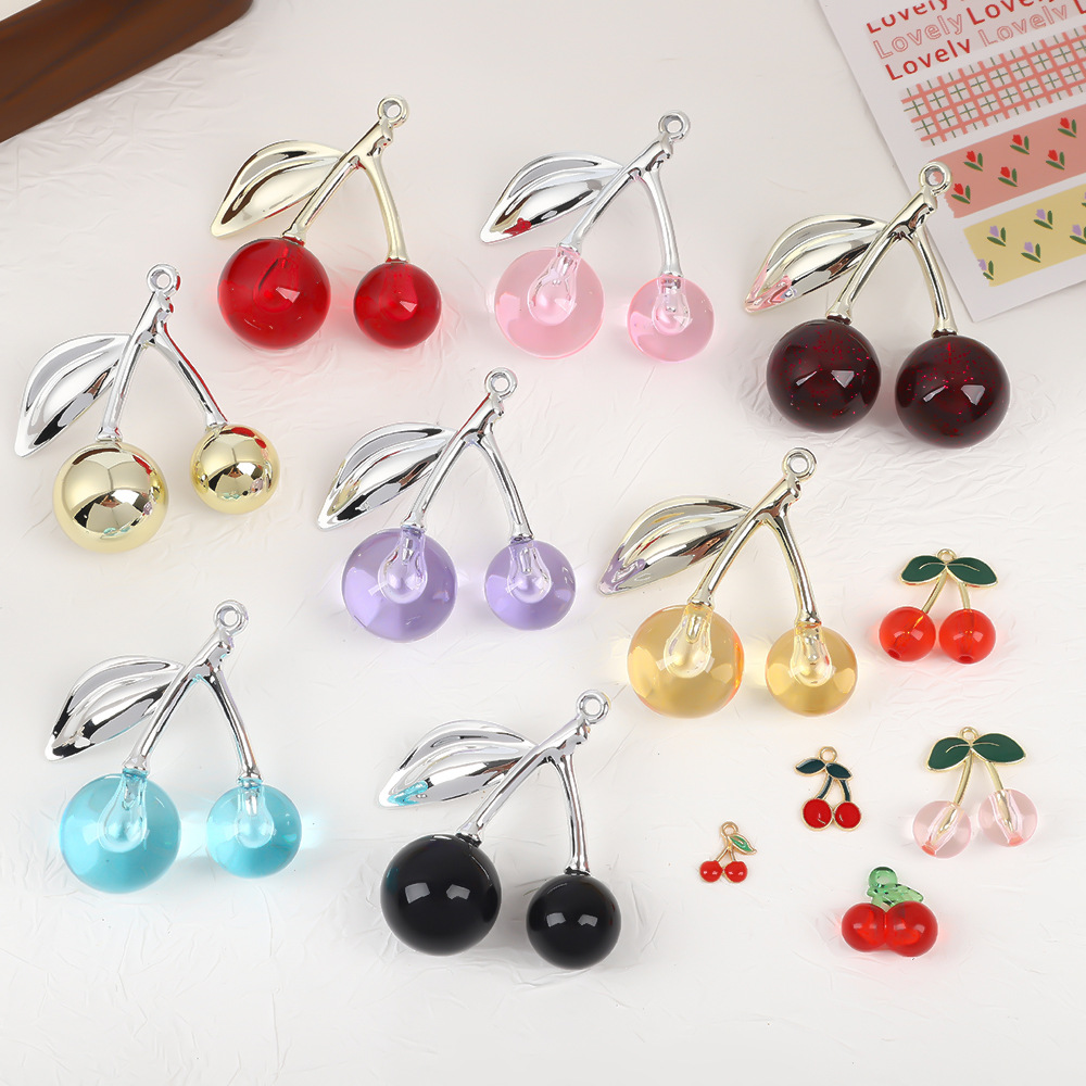 アクリルチェリービーズ合金 DIY アクセサリーフルーツチェリージュエリーイヤリングペンダント甘いシミュレーションキーホルダードア
