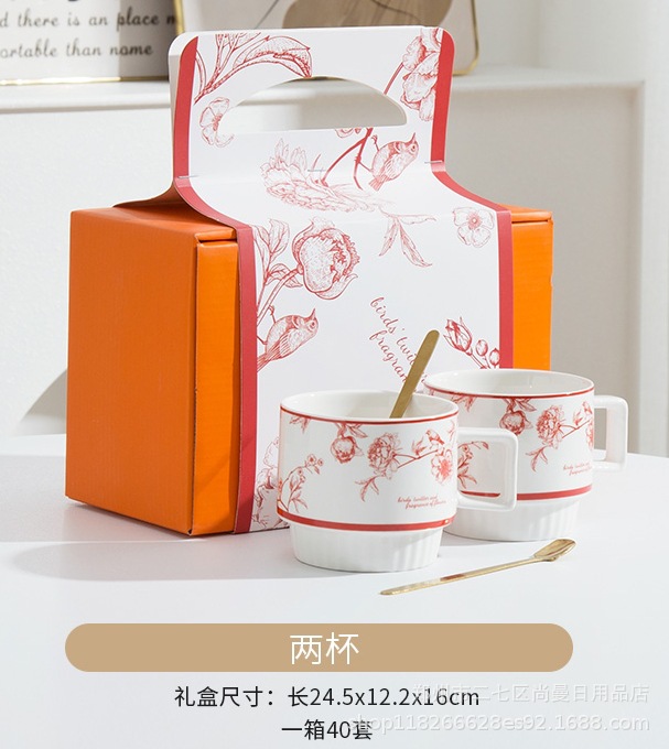 鳥と花の香り レッド 2カップ 2スプーン 24セット/箱
