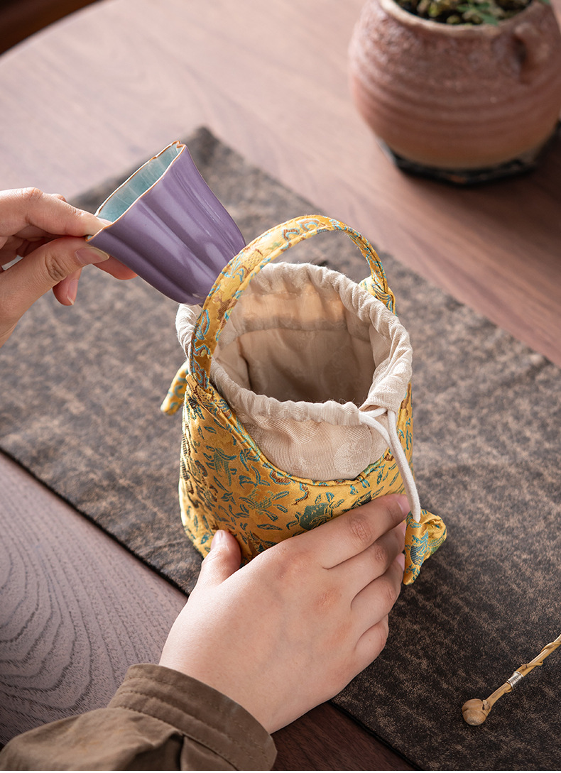 中国風の錦織巾着ティーカップバッグポータブル旅行布バッグ茶道アクセサリー茶事バッグ茶道収納袋