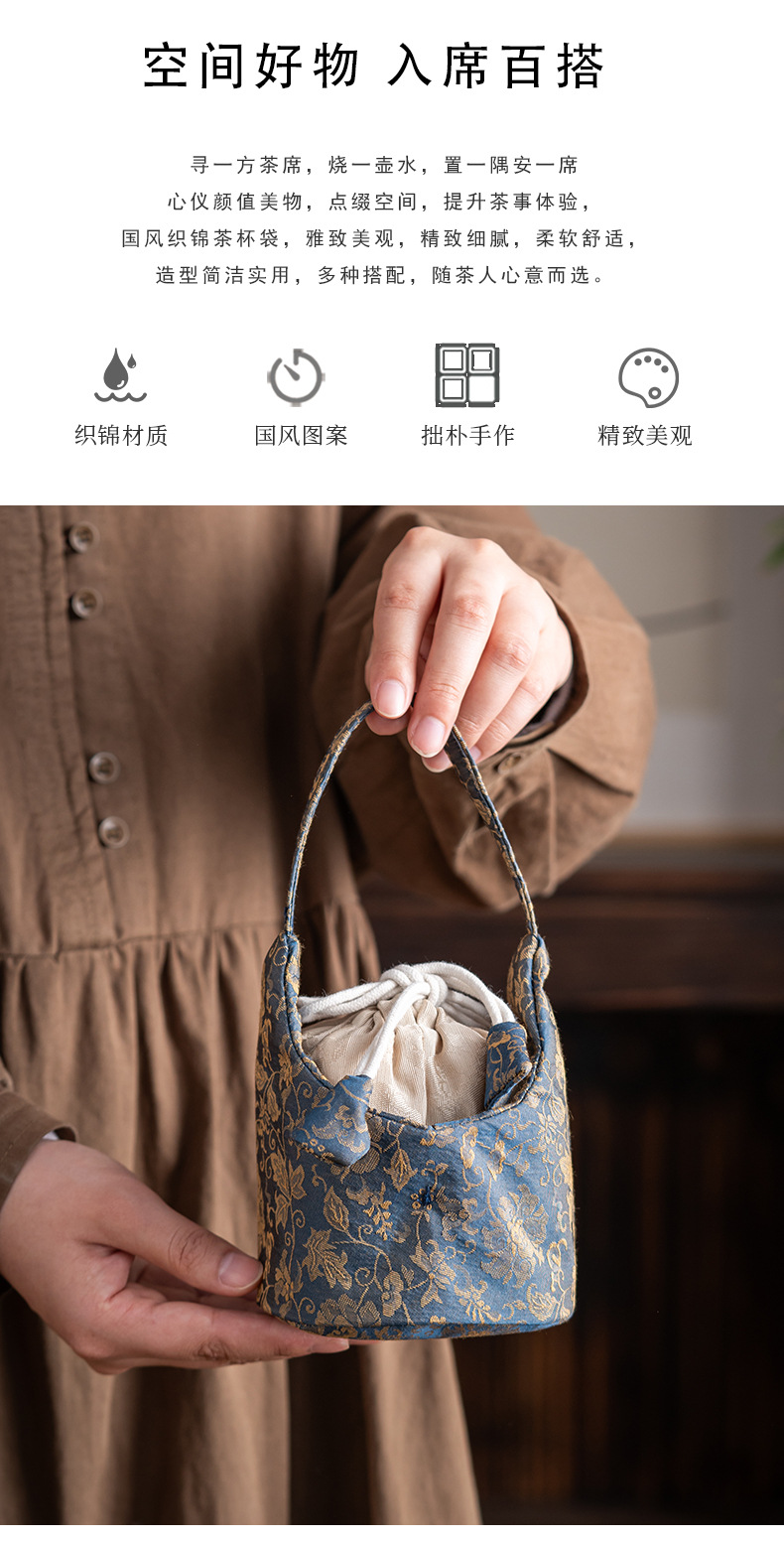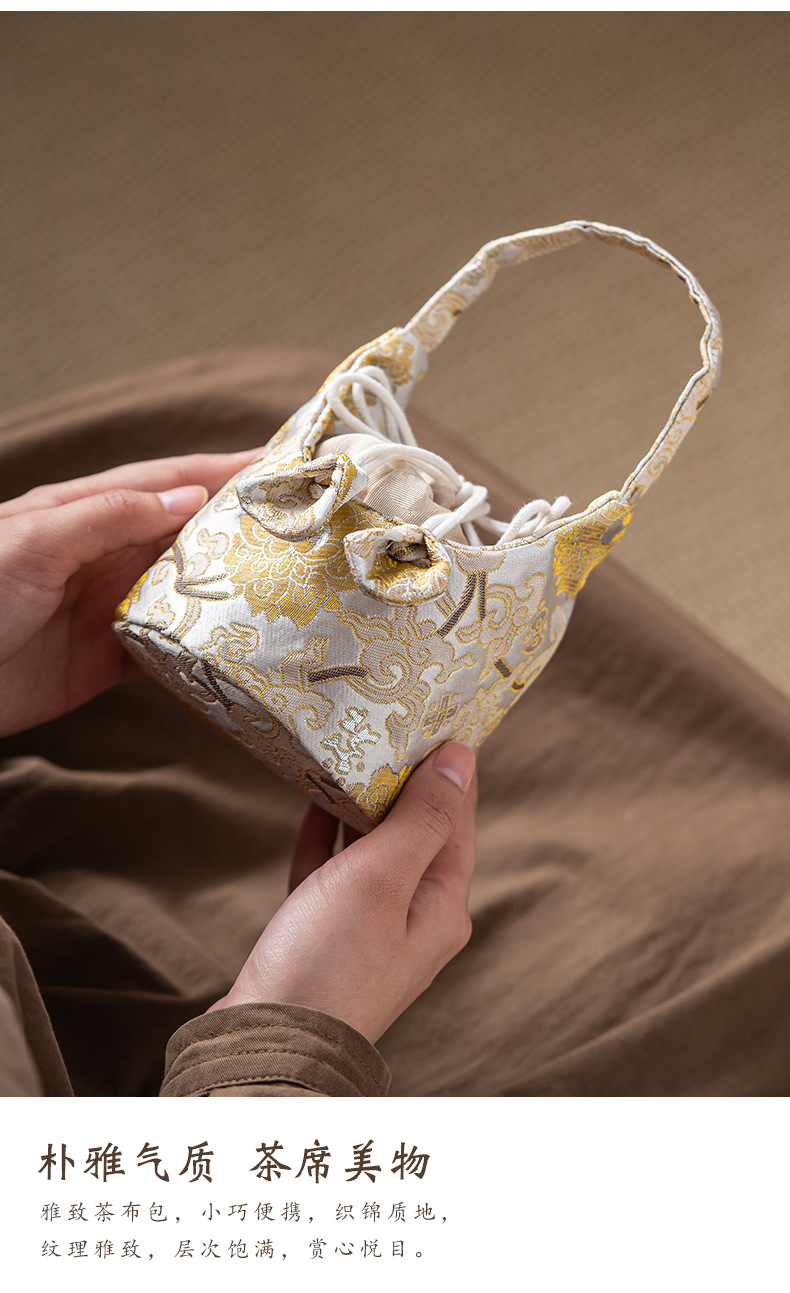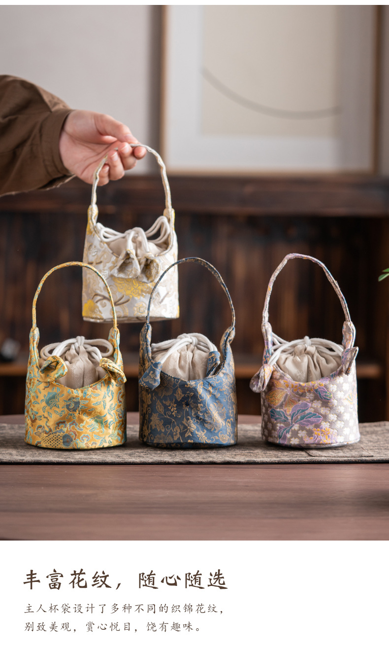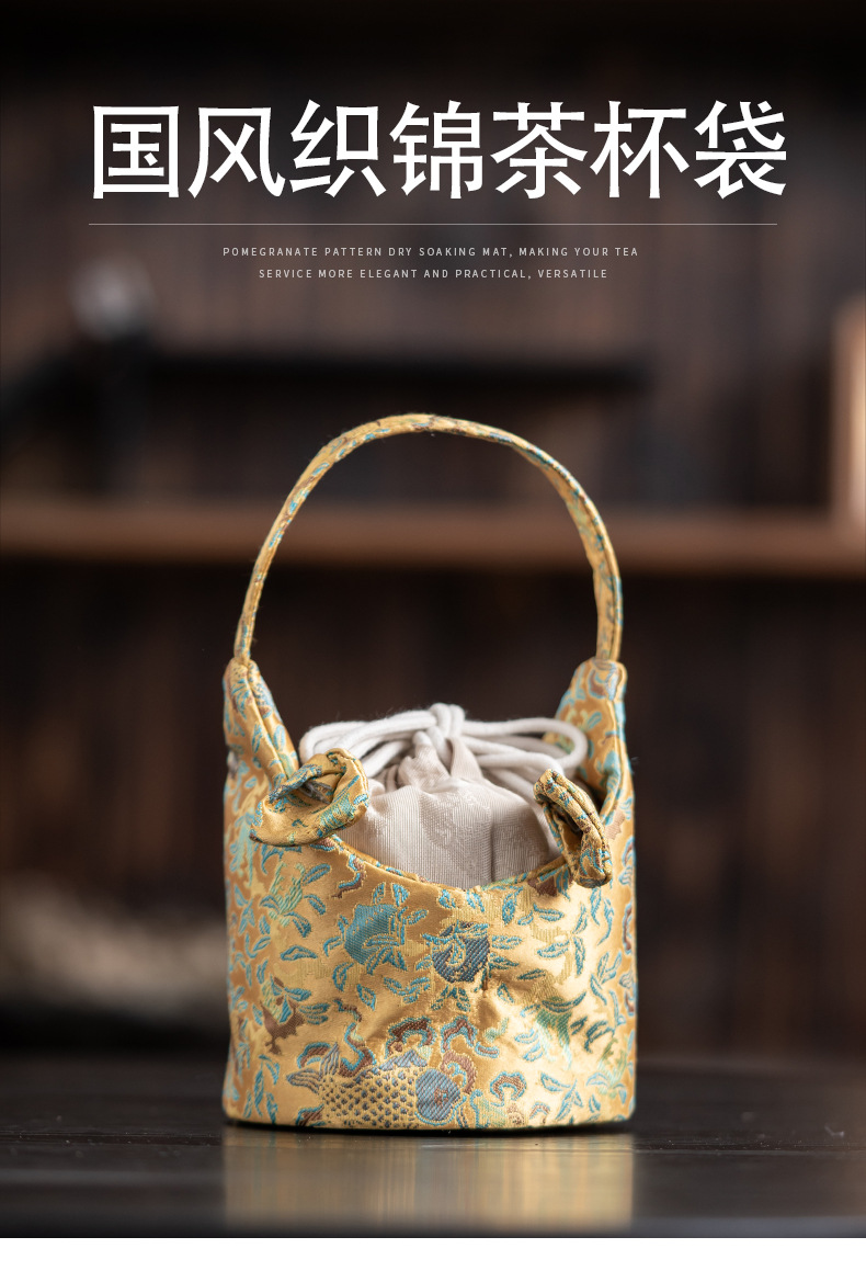 织锦手提茶杯袋文玩珠宝佛串收纳袋旅行户外便携布艺茶具加厚包