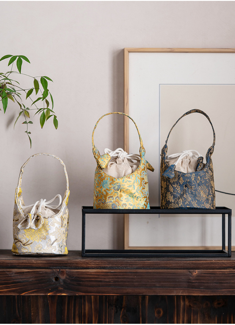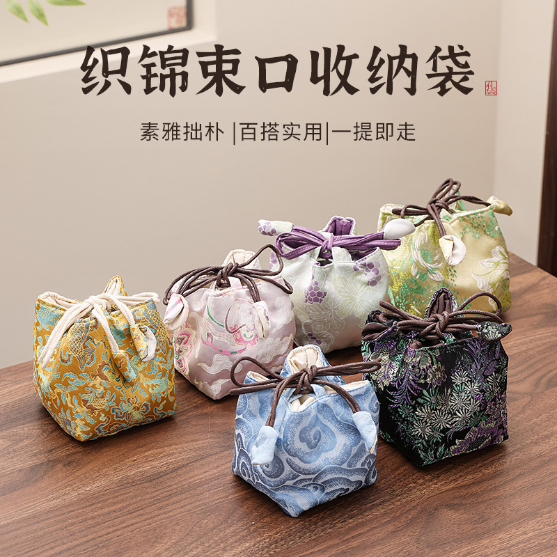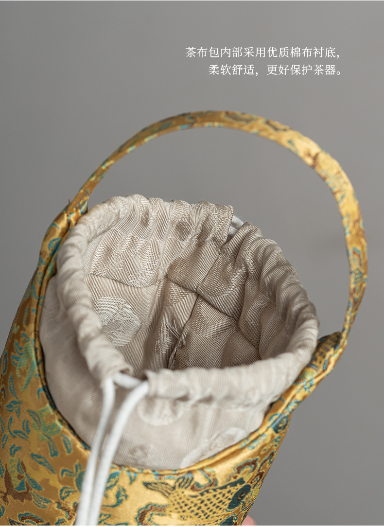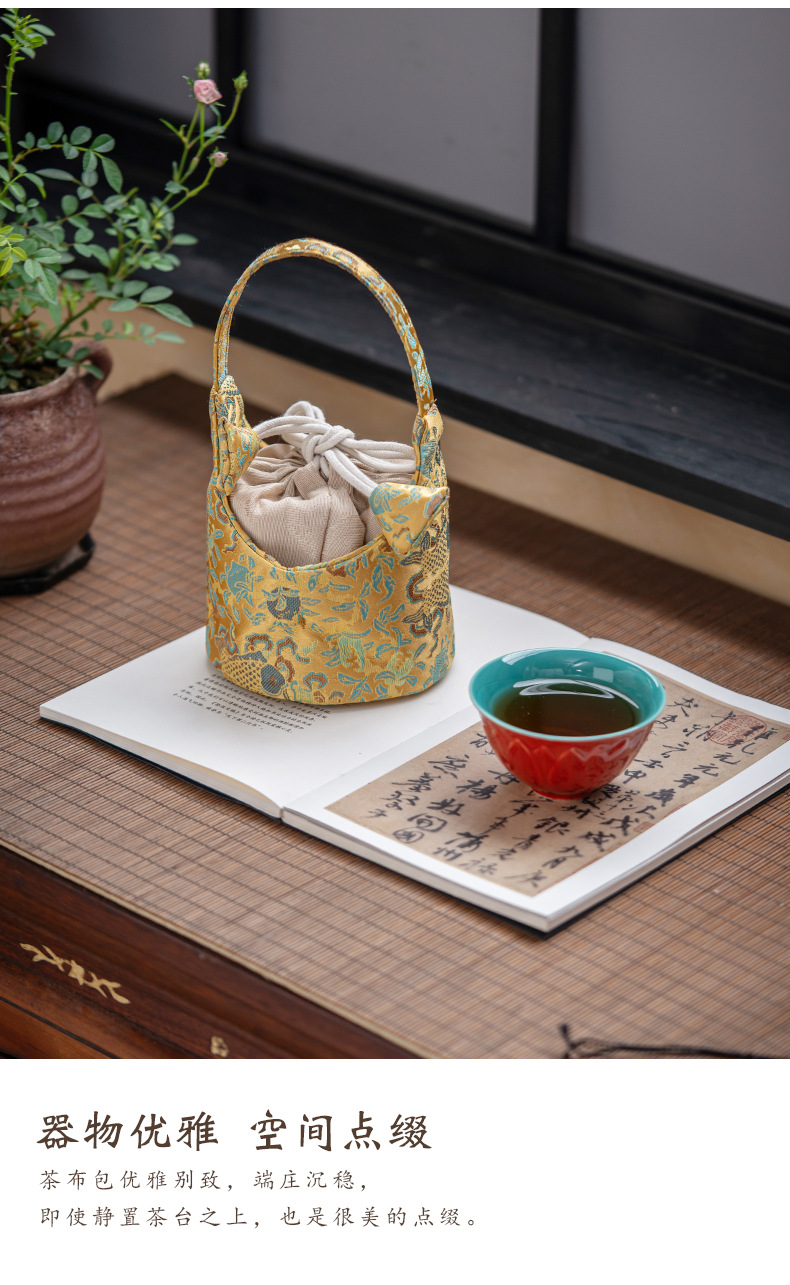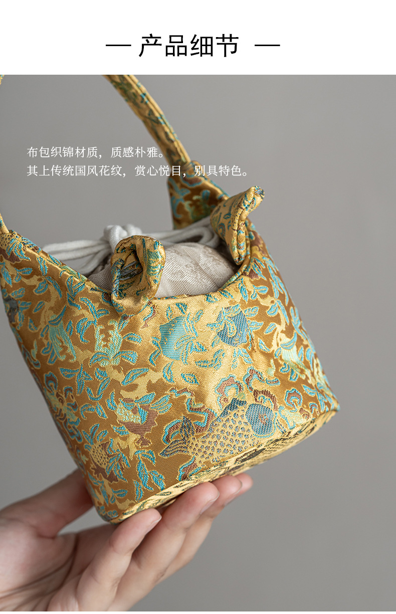 织锦手提茶杯袋文玩珠宝佛串收纳袋旅行户外便携布艺茶具加厚包