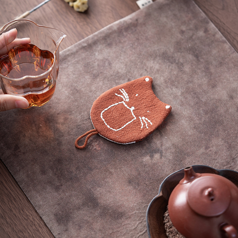 中国式手刺繍ラミー麻カップマットクリエイティブカップ断熱マットレトロ茶道布芸茶器部品