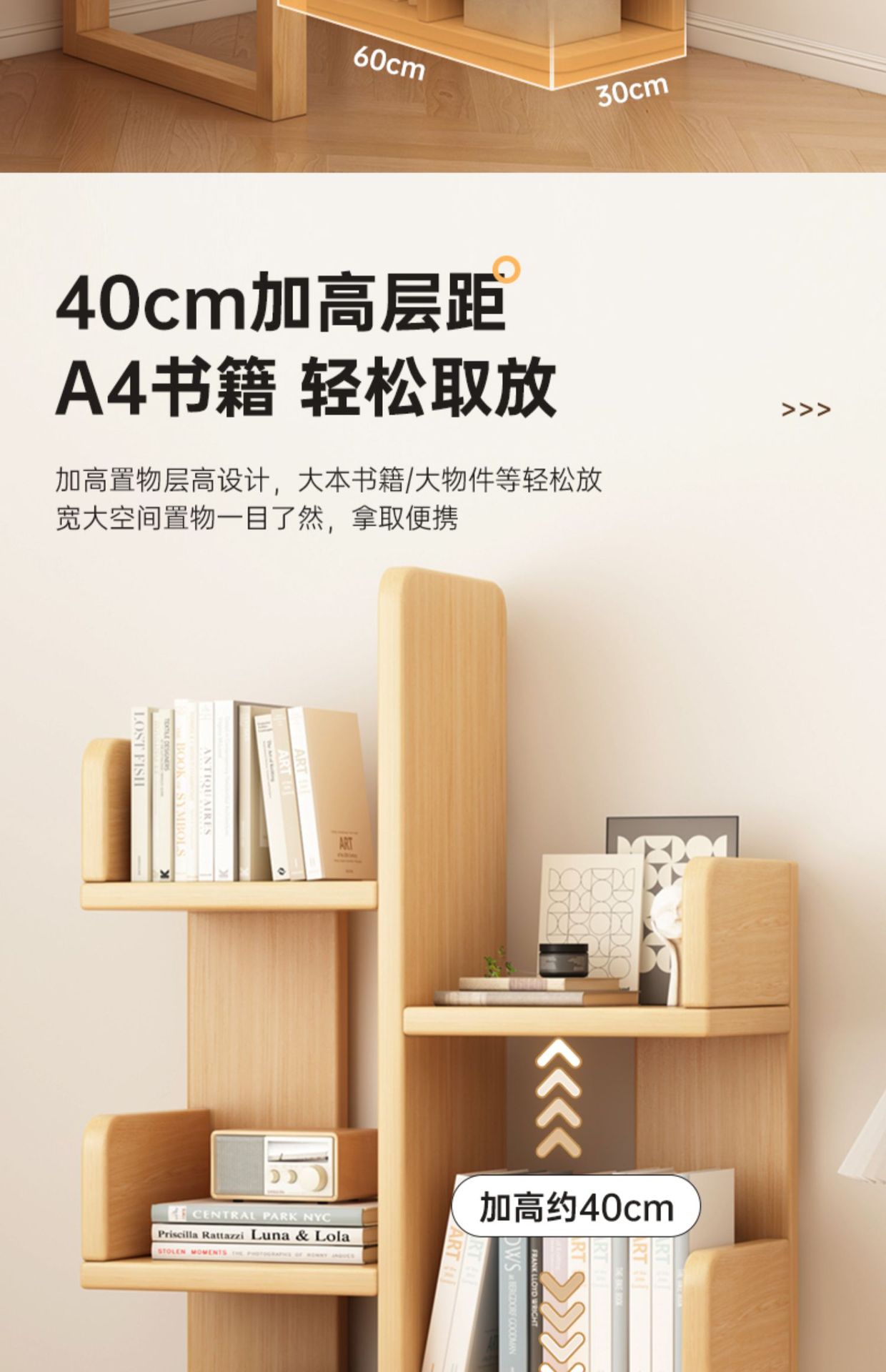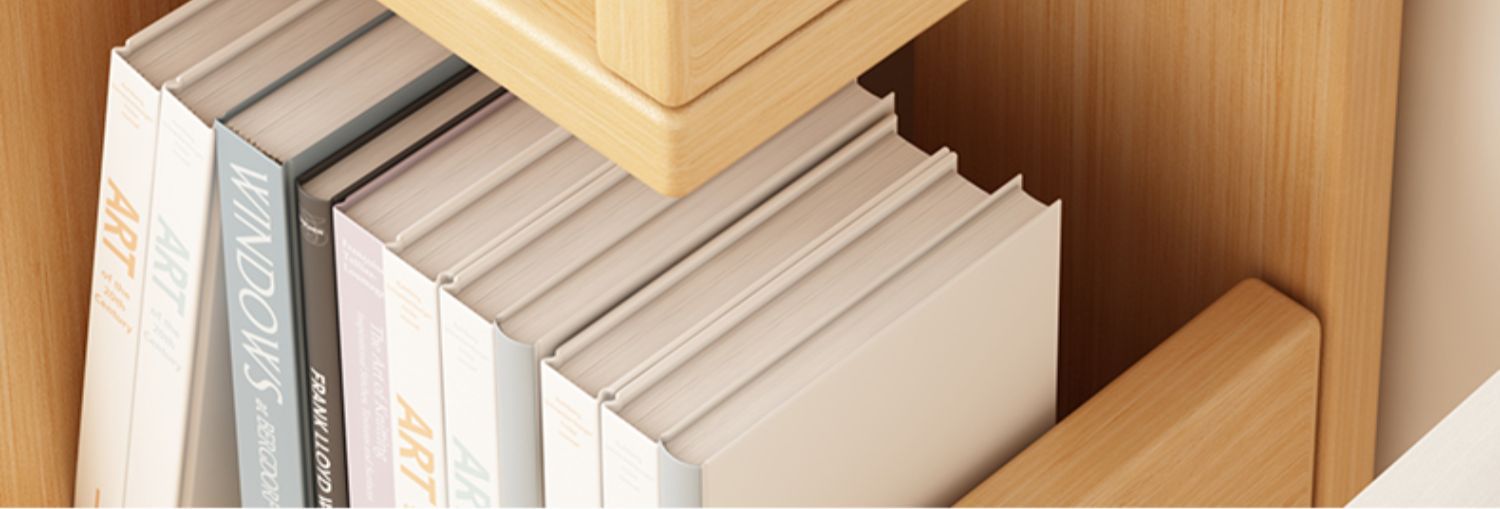 無垢材の本棚、収納キャビネット、一体型壁掛け本棚、コーナー収納ラック、自宅のリビングルーム、スペースを占有しないディスプレイラック