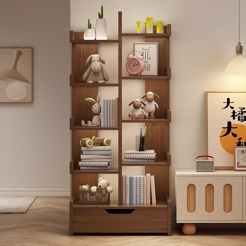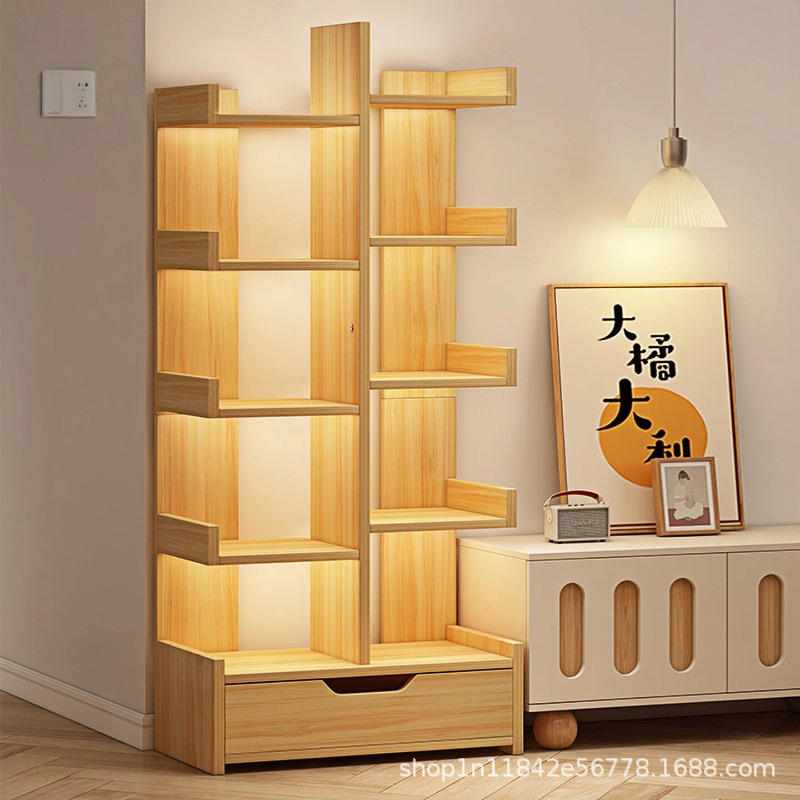 実木本棚創意樹形床置き棚家庭用リビング収納棚壁角本棚子供用ロッカー