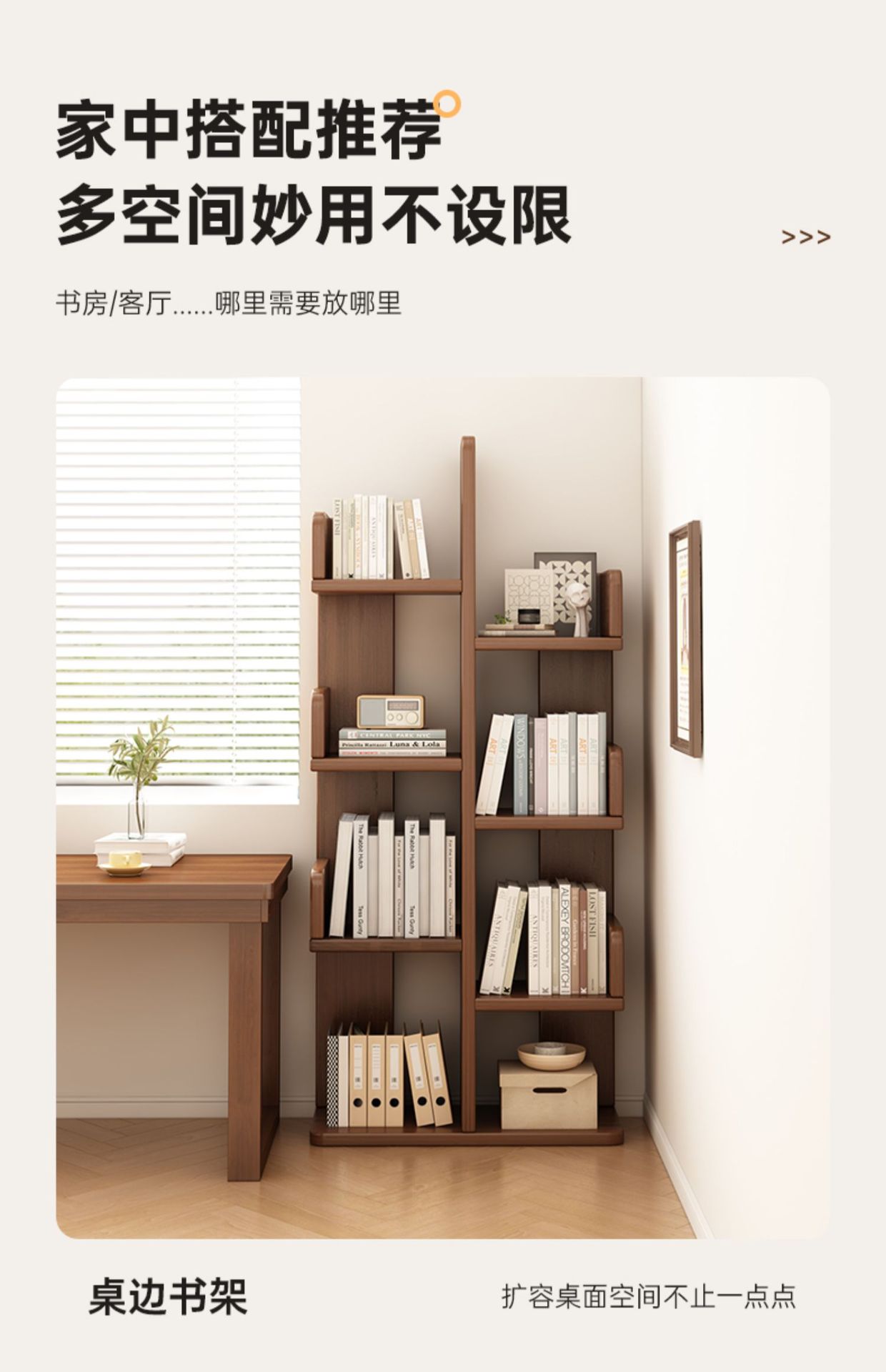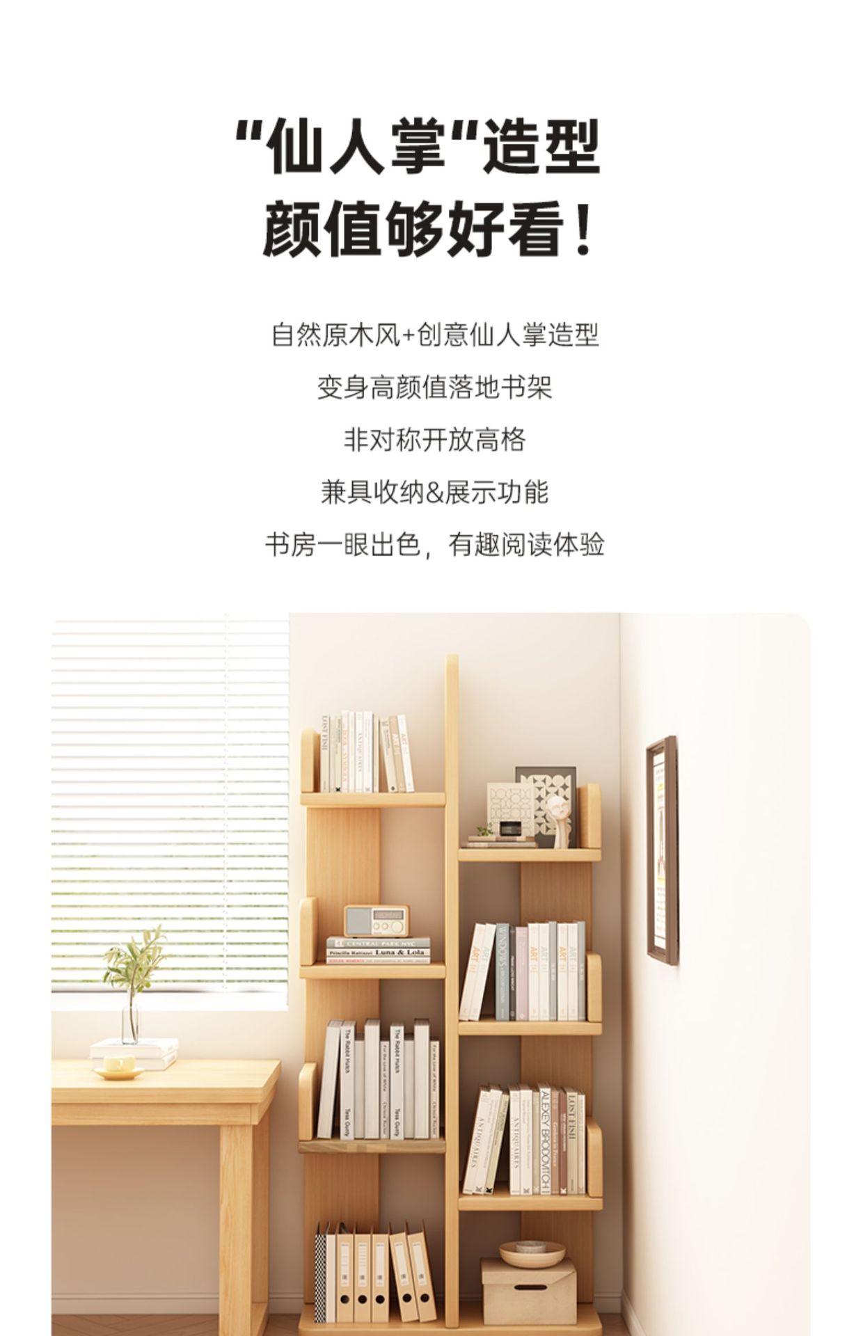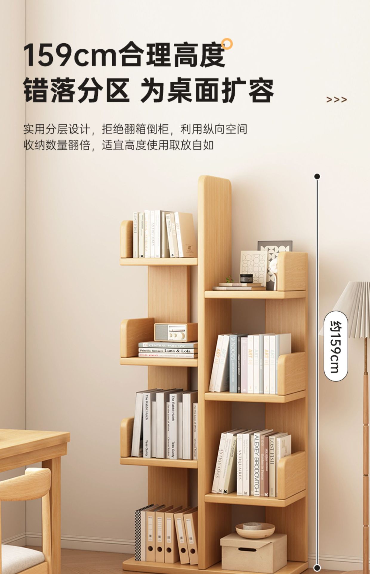 树形书架置物架落地多层客厅储物架简易窄小书柜一体靠墙边收纳架