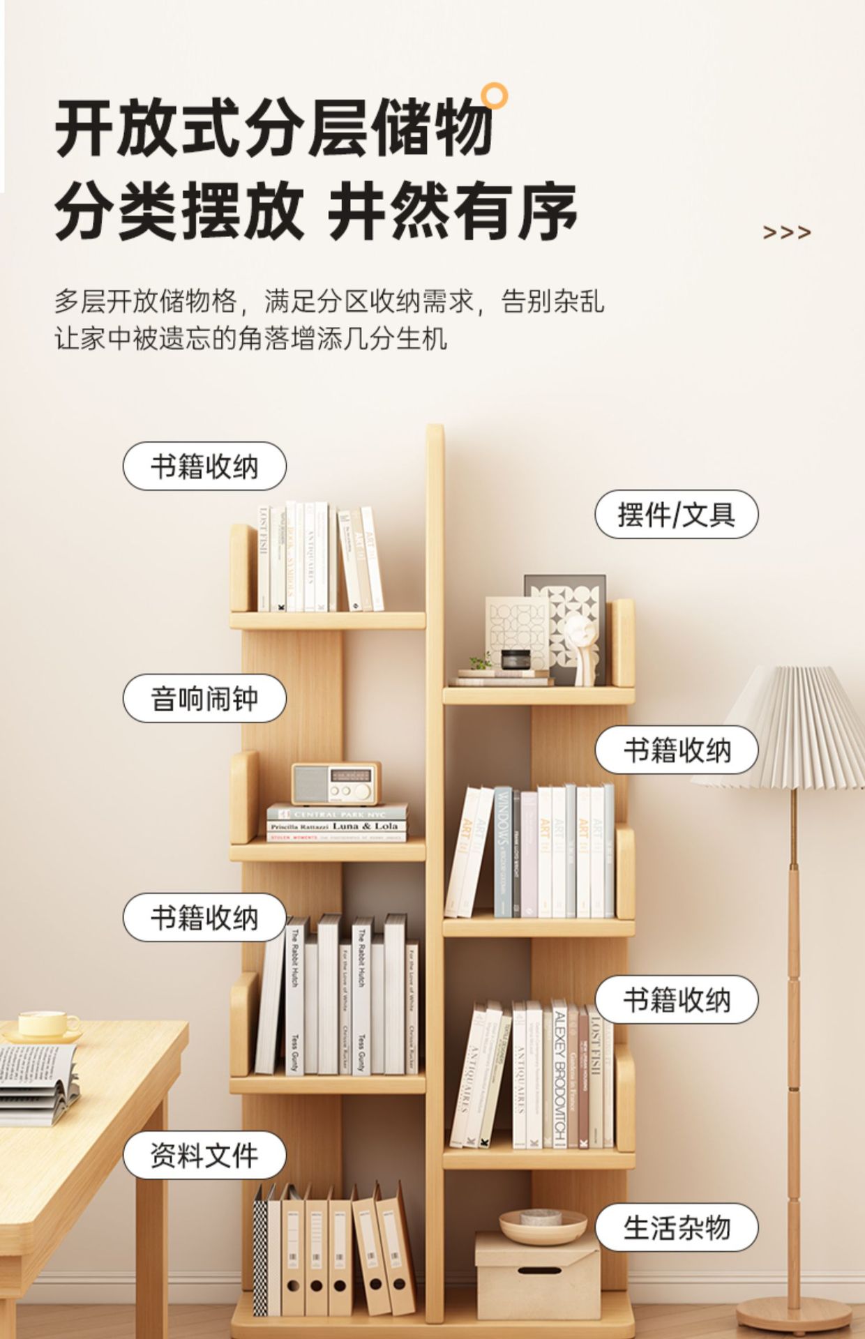 本棚床置き収納ラックリビングルーム一体型壁収納ラックディスプレイラック家庭用収納キャビネット学生多層本棚