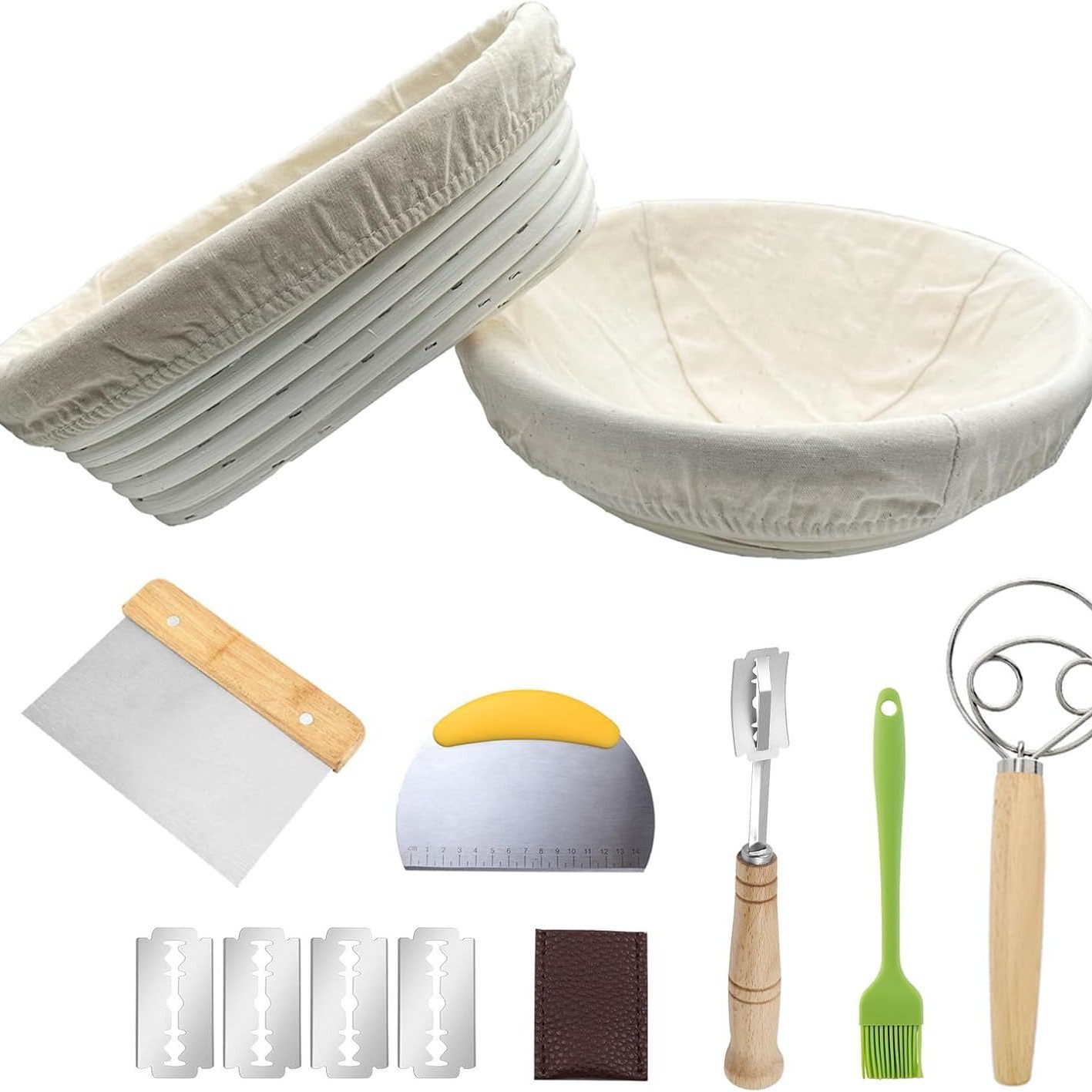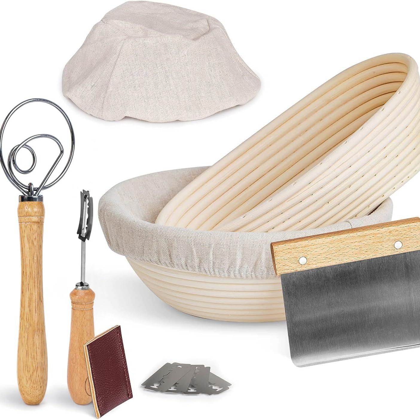 バンネトン発酵バスケット楕円形10インチ、9インチ、発酵タンククリームスクレーパー発酵バスケットセット