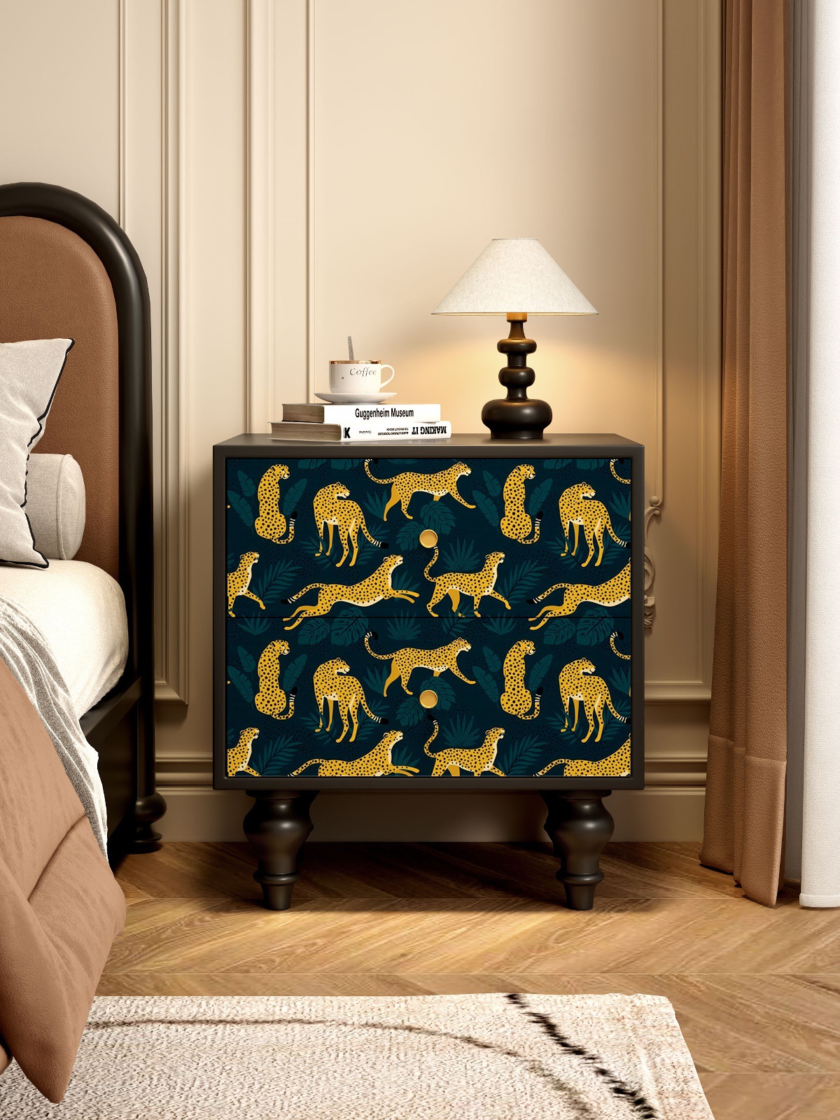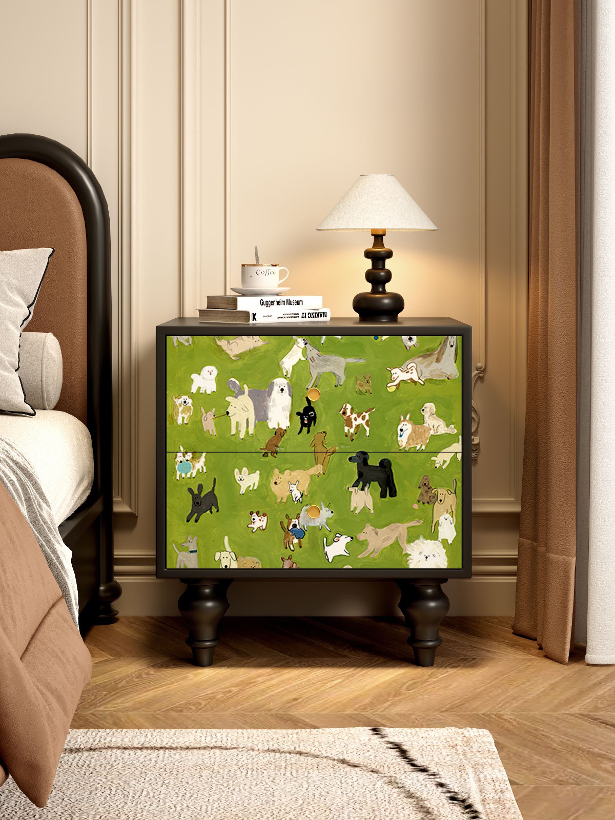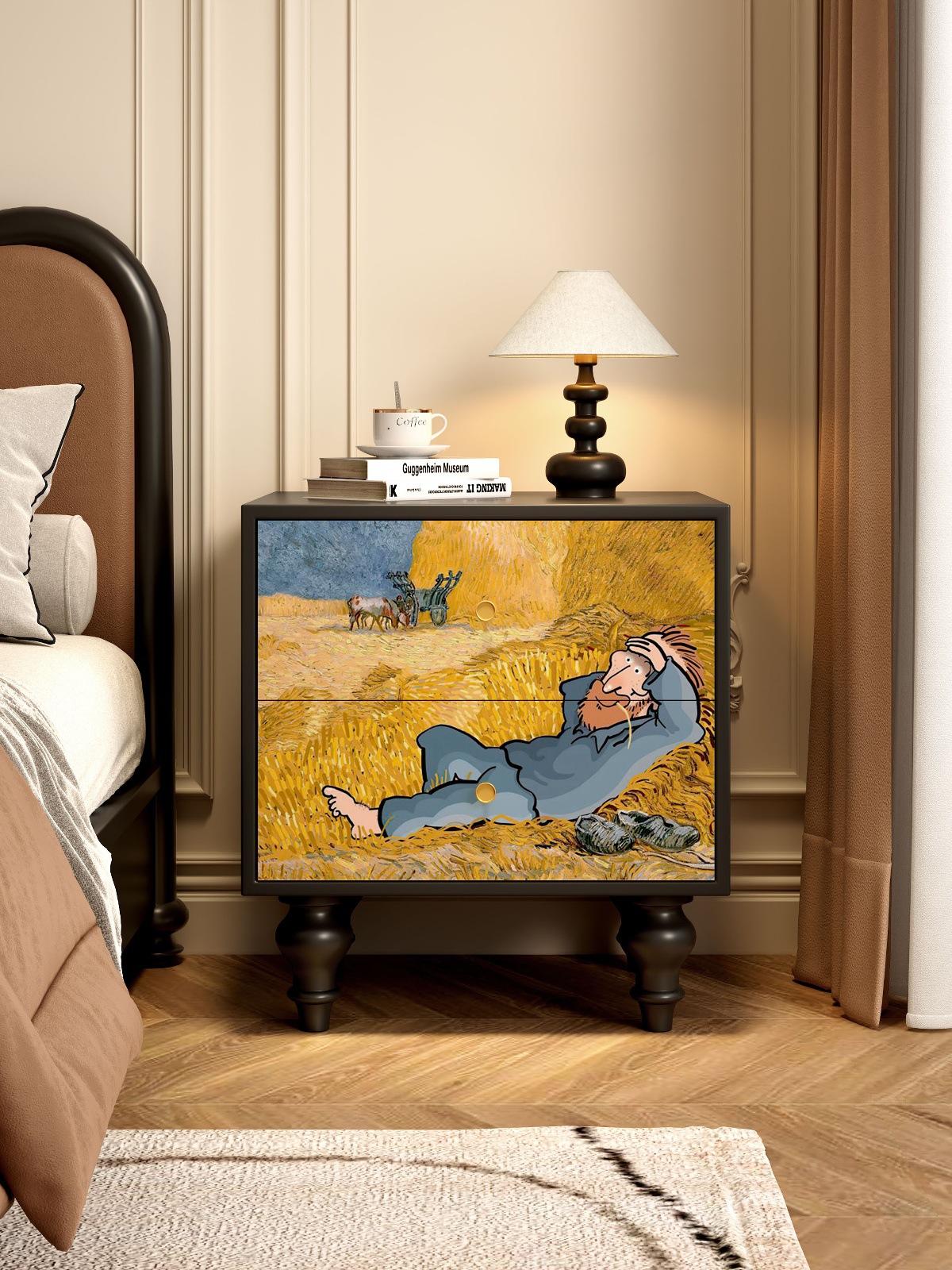 無垢材フレンチレトロ引き出しキャビネット抽象アート収納キャビネット寝室のベッドサイドテーブルリビングルームサイドキャビネット引き出しキャビネット収納キャビネット