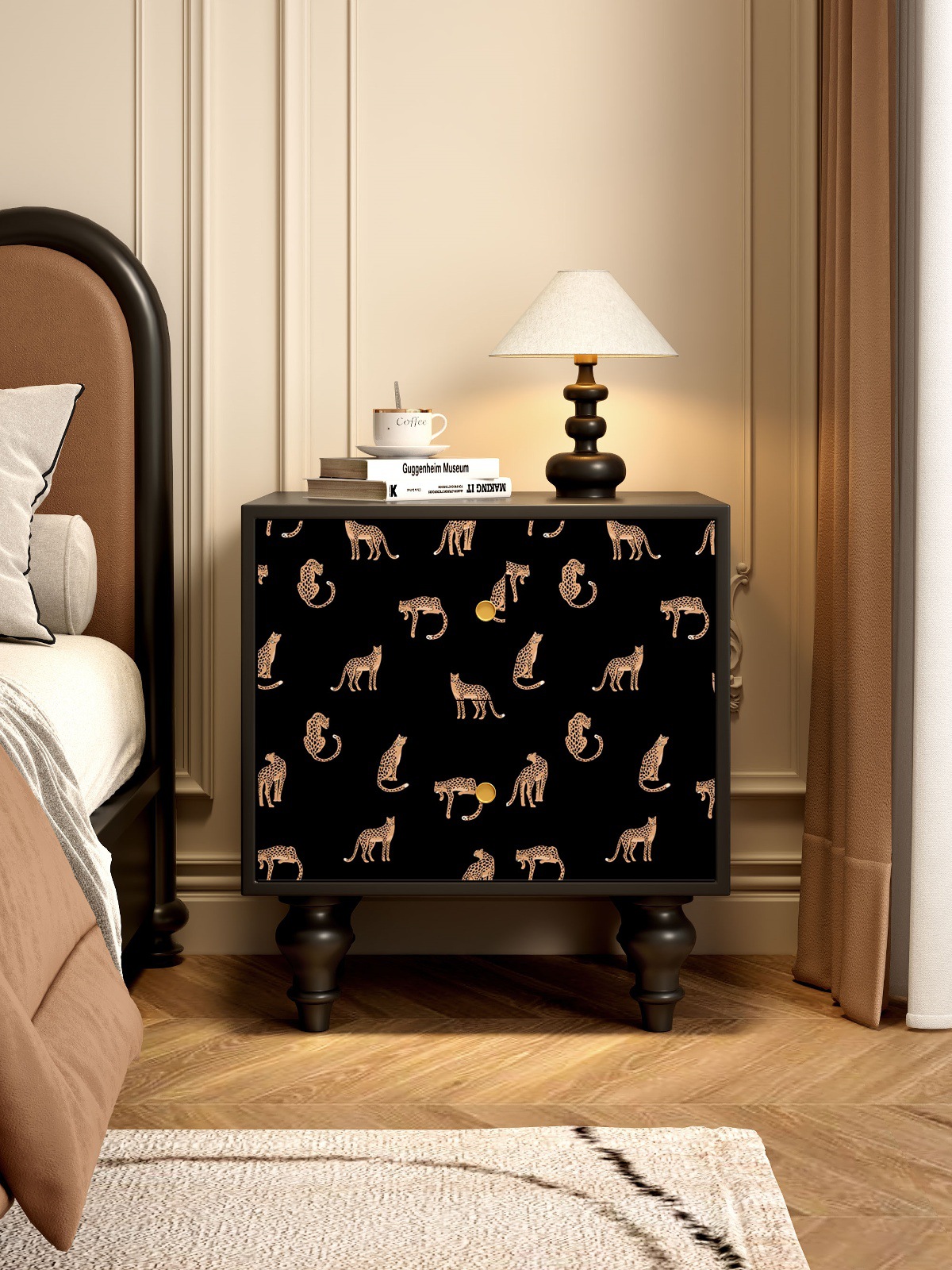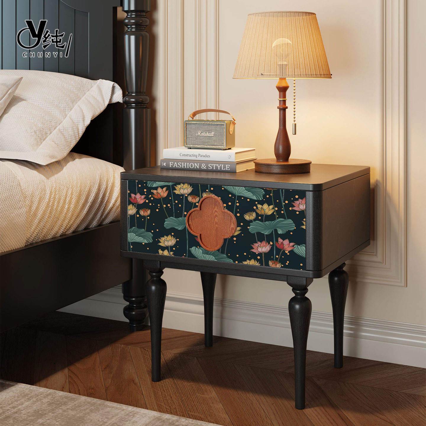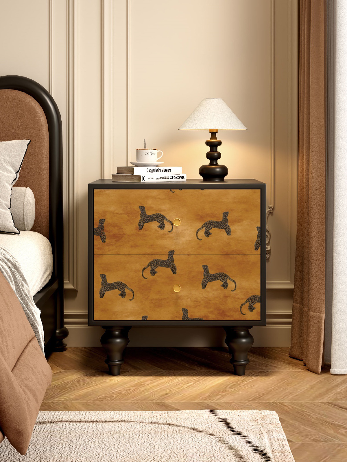 無垢材フレンチレトロダストボックス引き出しキャビネット抽象アート収納キャビネット寝室のベッドサイドテーブルリビングルームサイドキャビネット収納キャビネット