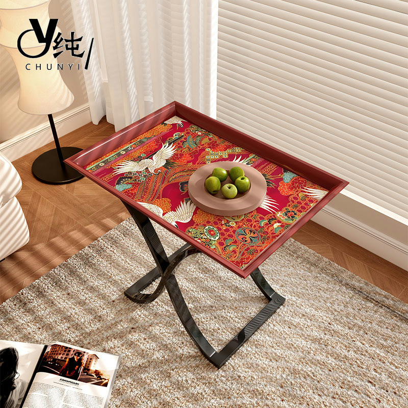 中古风仙鹤同寿实木边几小茶桌客厅沙发边角几可移动茶几桌置物架