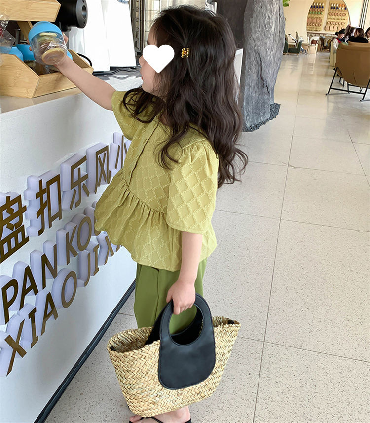 女の子の新しい2025夏スタイルカジュアル立体ジャカードノースリーブトップベビーガールズアンチパンツスーツトレンディ