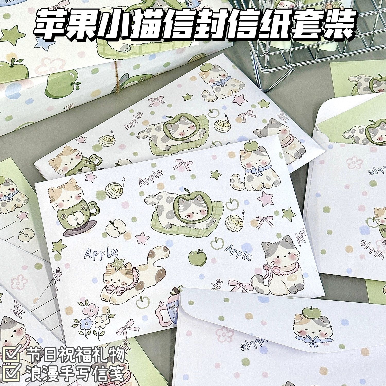 新しいリンゴの子猫の封筒の便箋セットins高颜値漫画かわいい大衆の創造性は手に手紙を書くことを祝福します