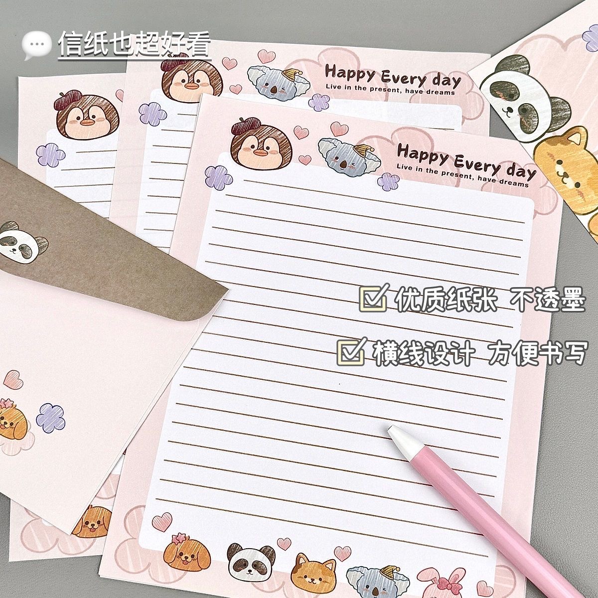 新しいオリジナルのインクかけ漫画動物封筒便箋ins高颜値儀式ロマンチックな創造性祝福プレゼント手紙