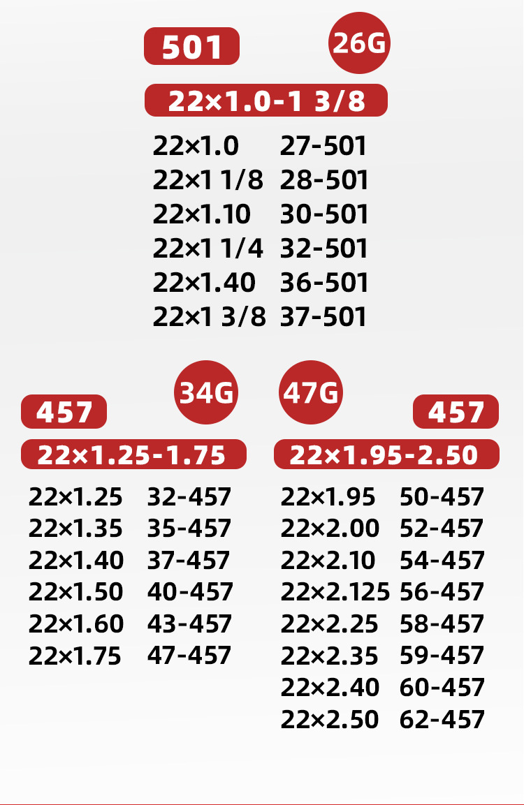 16inch (349) 1.0-1 3/8 ワンピース 45mm,16inch (349) 1.0-1 3/8 ワンピース 65mm,16inch (305) 1.2-1.75 ワンピース 45mm,16inch (305) 1.95-2.5 45mm 1本,18inch (355) 1.2-1.75 1本あたり45mm,18inch (355) 1.95-2.5 45mm 1本,20inch (451) 1.0-1.5 1本あたり45mm,20inch (451) 1.0-1.5 65mm 1本,20inch (406) 1 1/8-1.75 ワンピース 45mm,20inch (406) 1 1/8-1.75 65mm 1本,20inch (387) 1.5-2.35 45mm 1本,20inch (406) 1.9-2.6 45mm 1本,20inch (425) 1.9-2.6 1本あたり45mm,22inch (501) 1.0-1 3/8 ワンピース 45mm,22inch (501) 1.0-1 3/8 ワンピース 65mm,22inch (457) 1.25-1.75,22inch (457) 1.95-2.5 1本あたり45mm