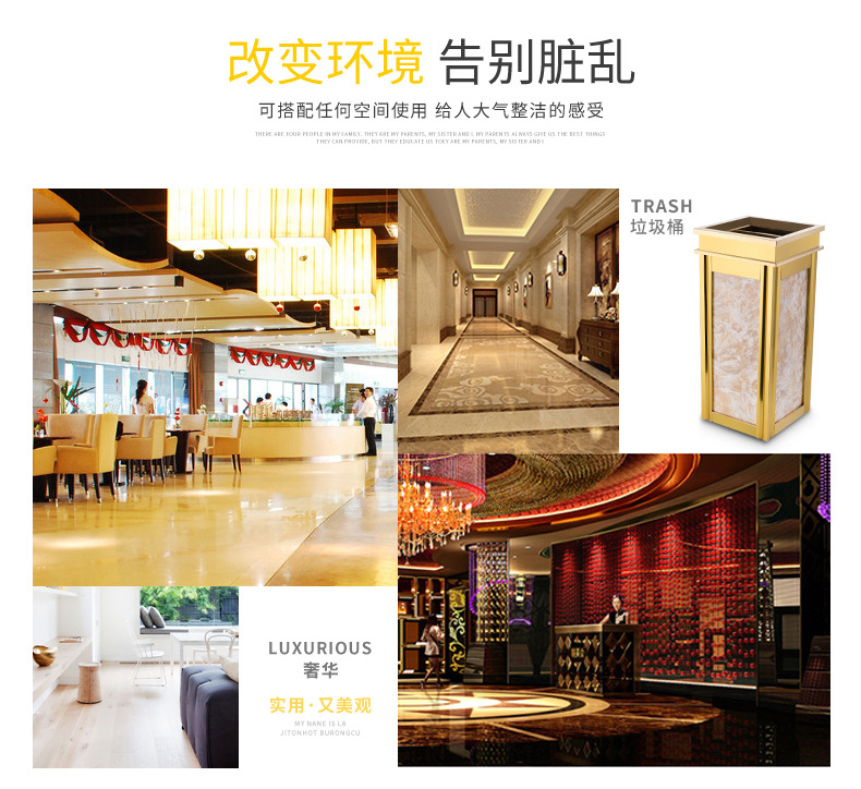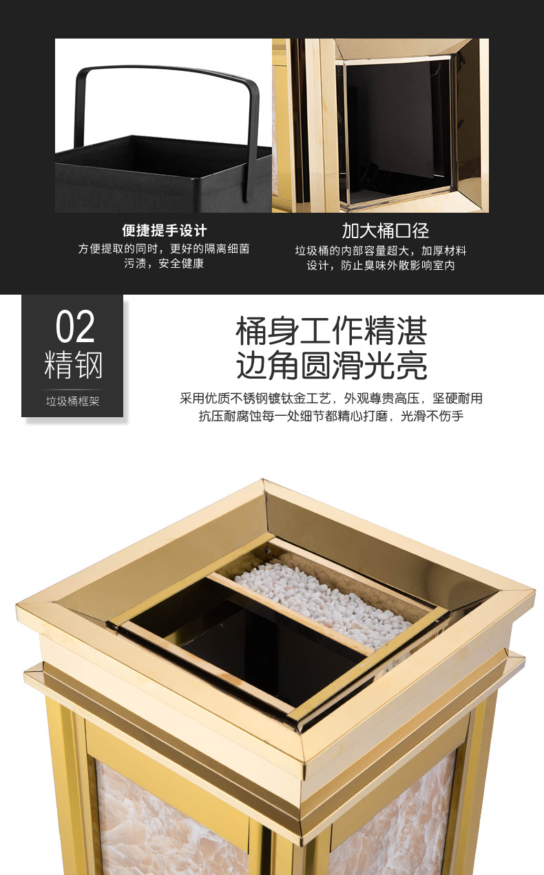 ステンレスホテルゴミ箱分類商用灰皿付きホテルレストランロビー縦型エレベーター口果皮箱