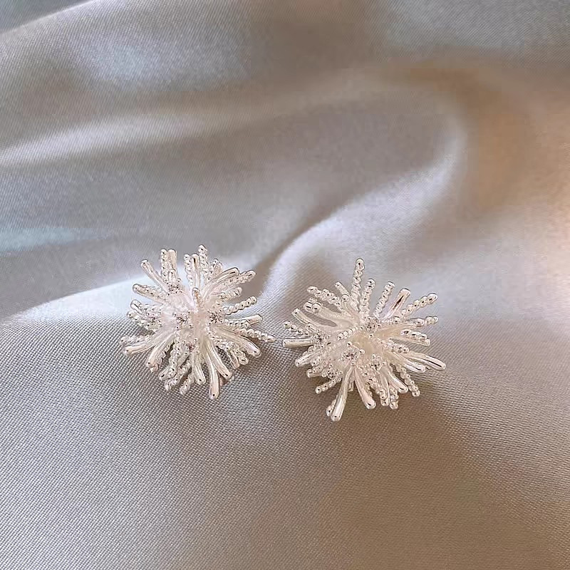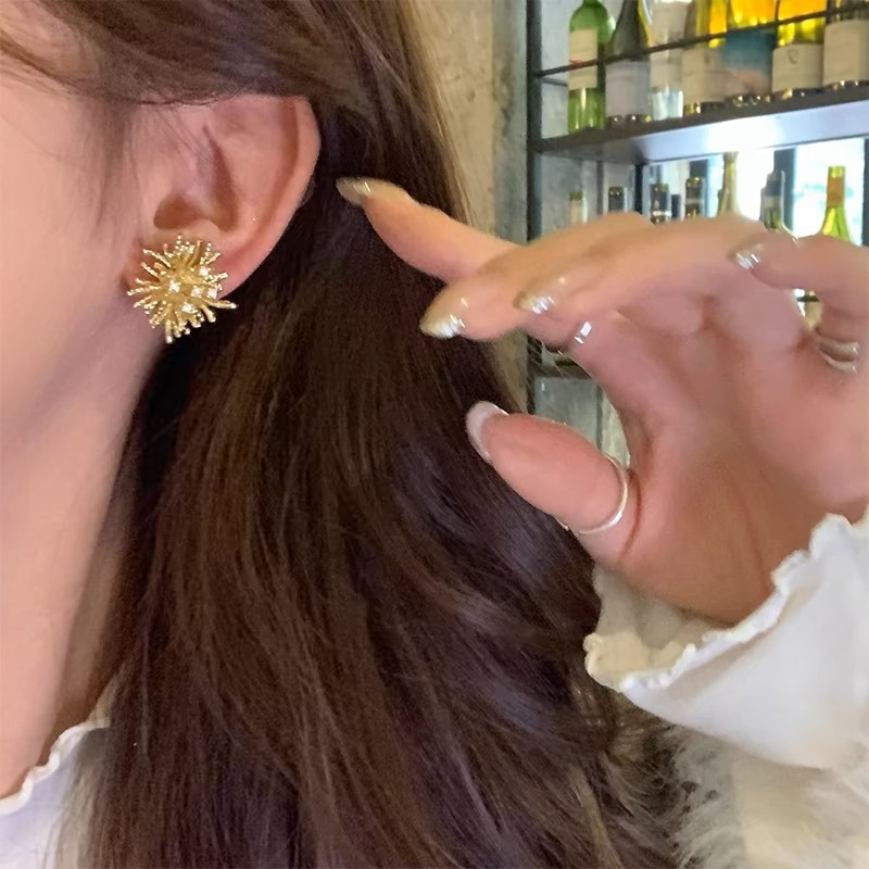 軽豪華高級感花火銀針イヤリング2025新型爆金小大衆デザイン感耳飾り気質百合ピアス