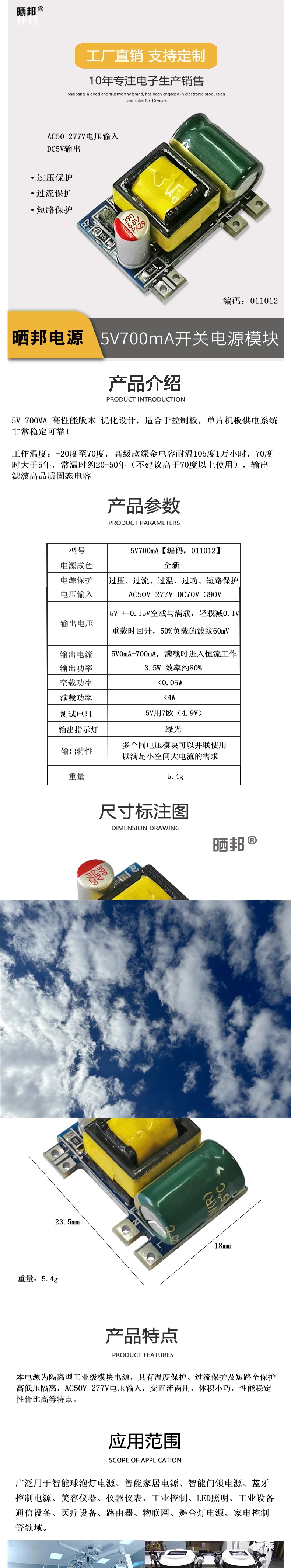 5V700mA3.5W 絶縁スイッチ電源モジュール AC-DC 降圧モジュール 220 から 5V 電源ベアボード