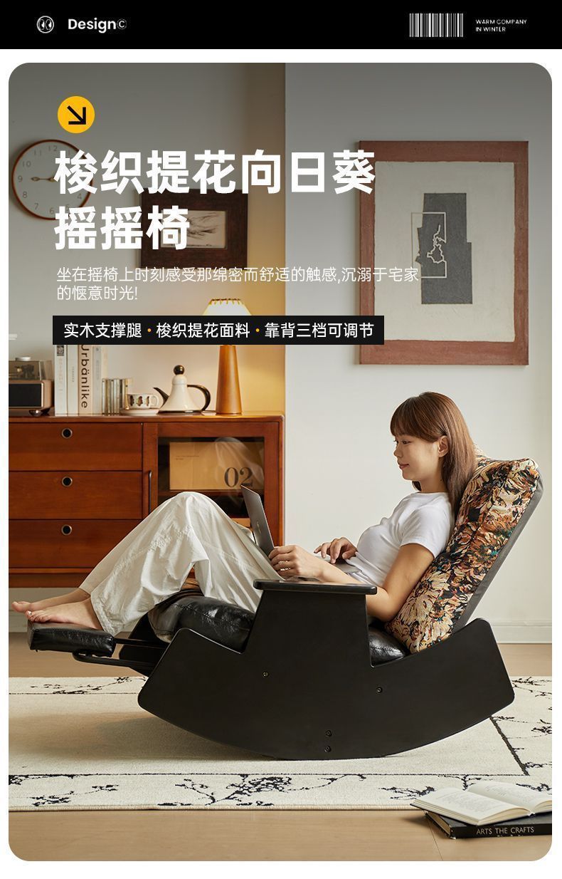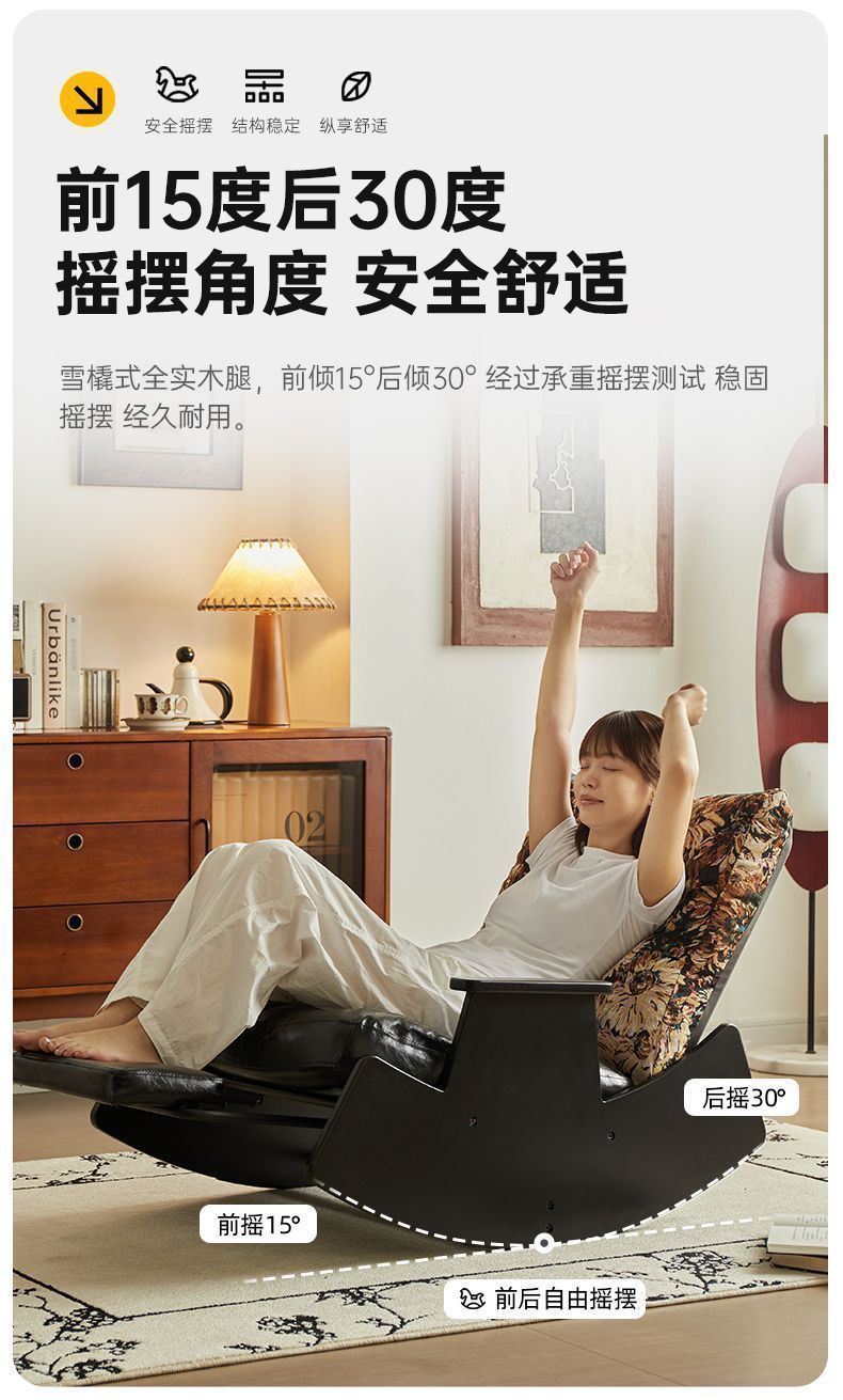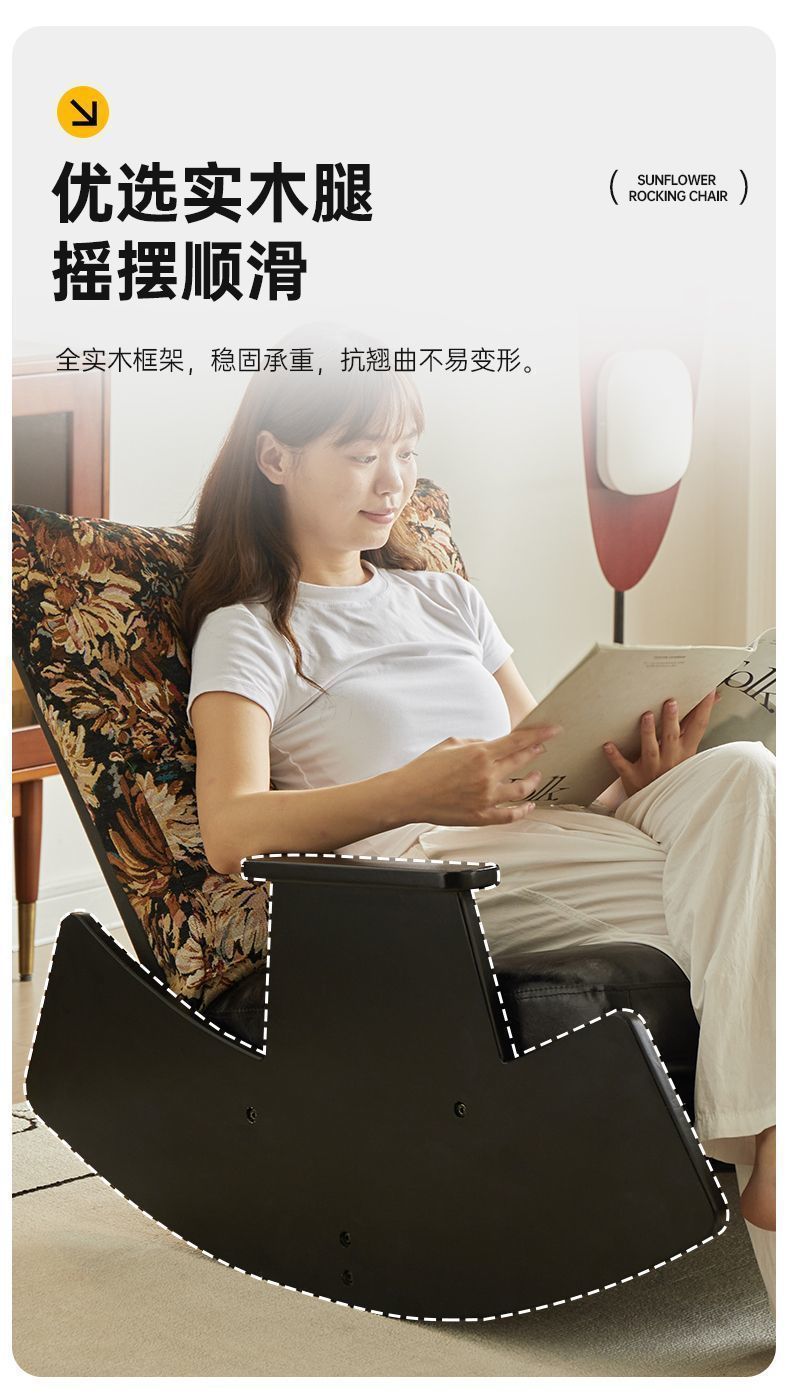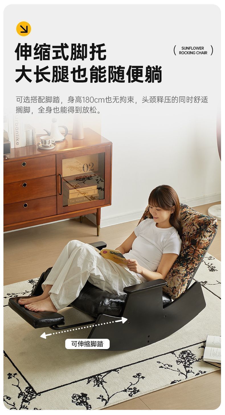 レトロロッキングチェアホームリクライニング無垢材レジャーリクライニングチェアバルコニーレイジーソファチェアシングルソファリビングルームチェアP^