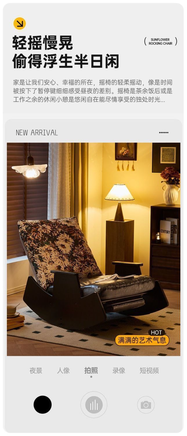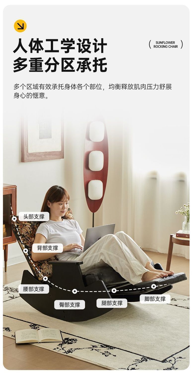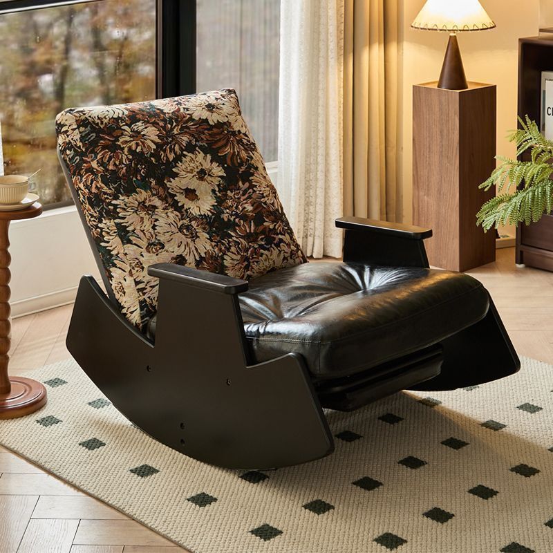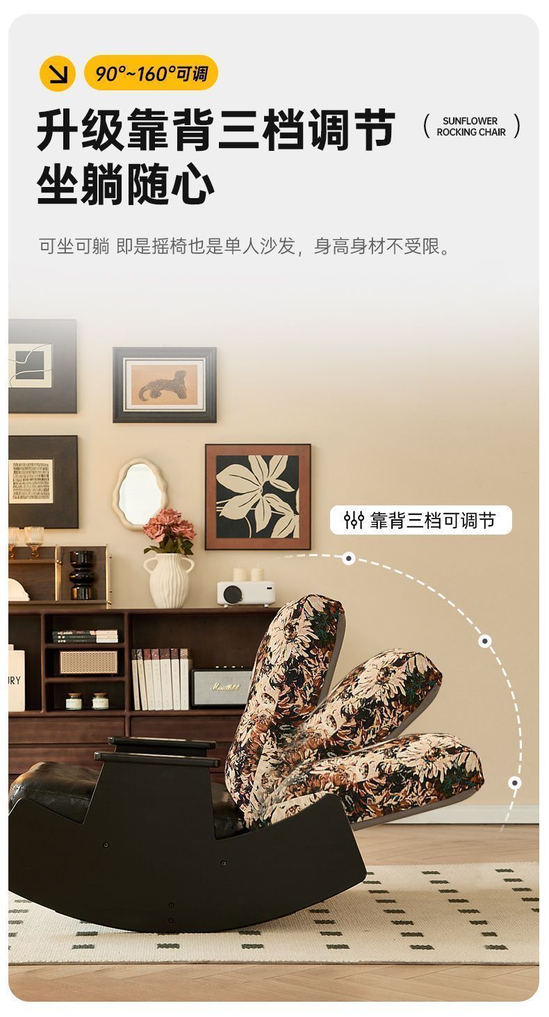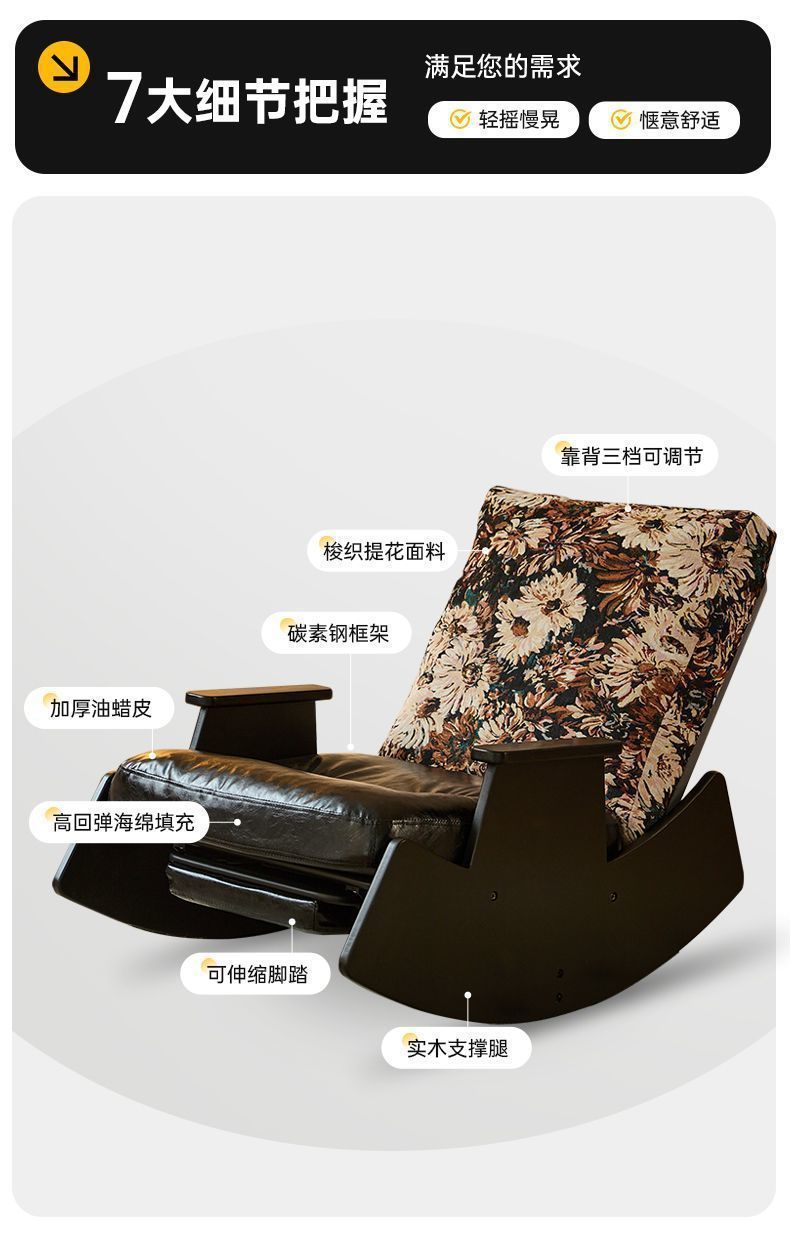 レトロロッキングチェアホームリクライニング無垢材レジャーリクライニングチェアバルコニーレイジーソファチェアシングルソファリビングルームチェアP^