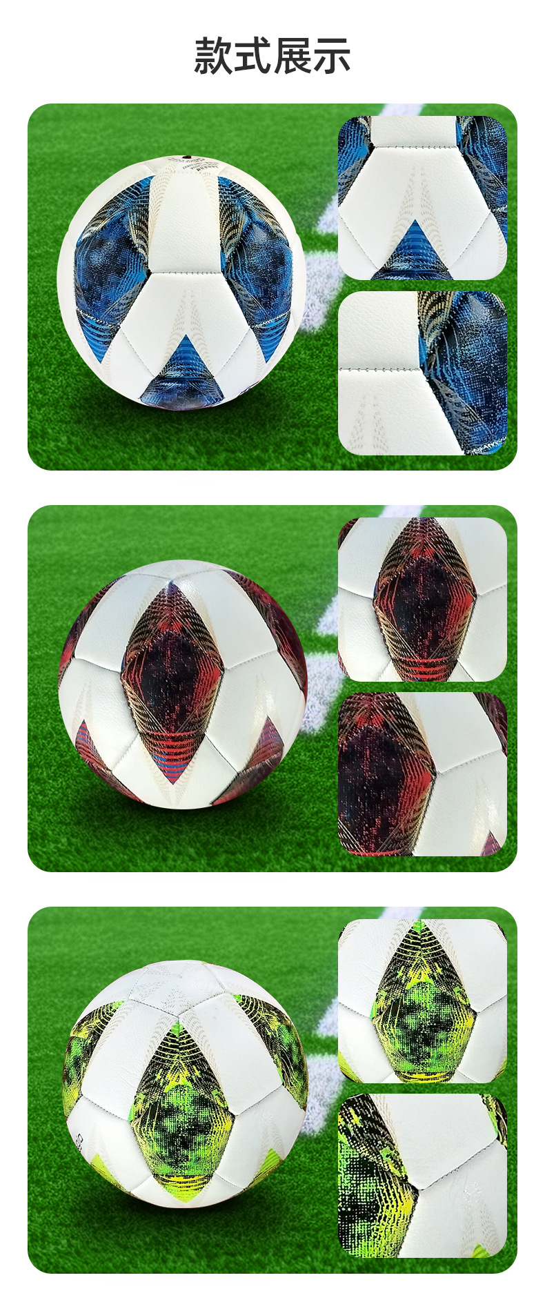 新型5号サッカー卸売りキャンパス青少年訓練試合サッカー機縫いpvcレイシ紋高強度耐蹴り