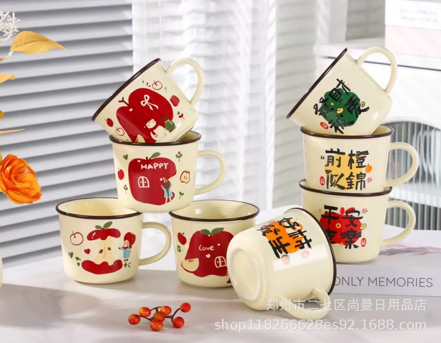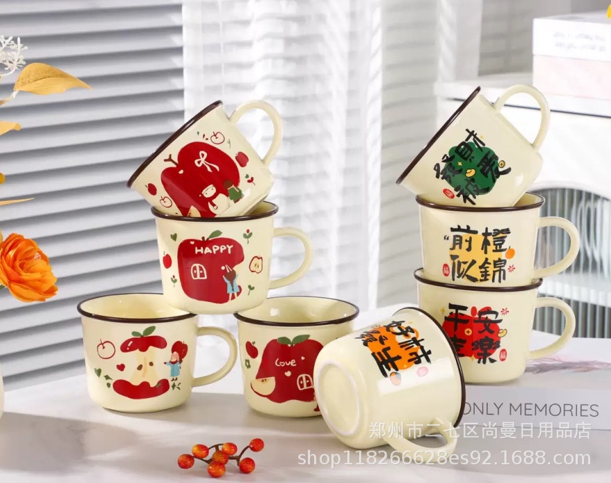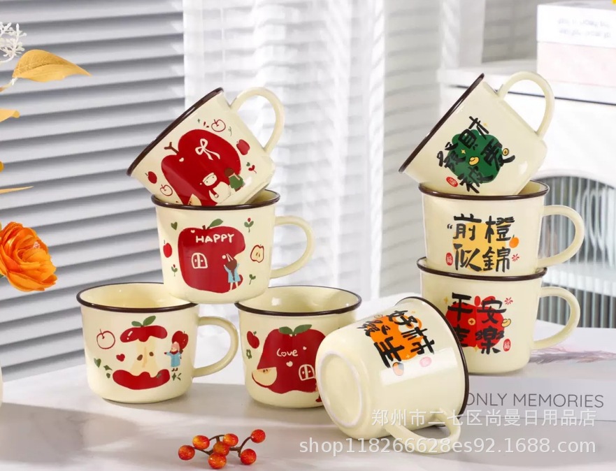 Youli クリエイティブ大口マグ 340 ミリリットル縁起の良い言葉パターンレトロアップルカジュアルセラミックマグ卸売