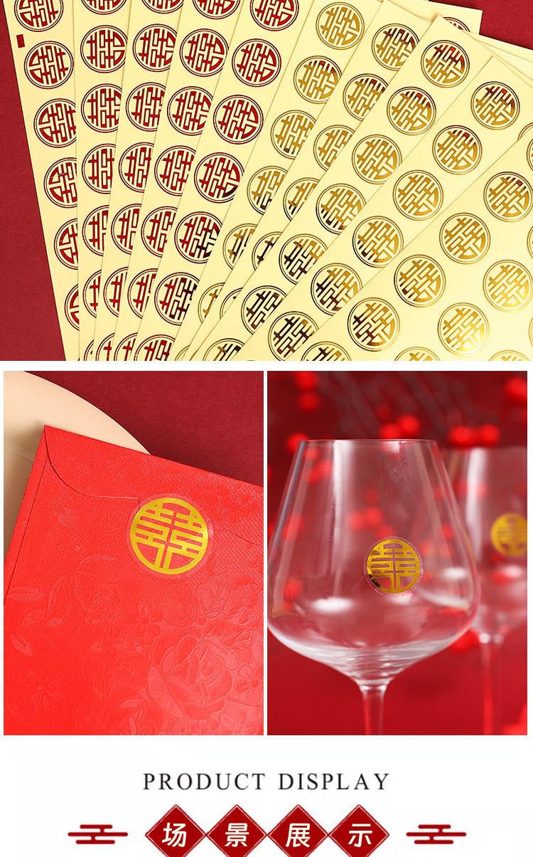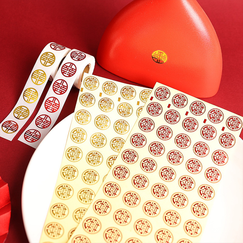 ウェディング用品、小さなウェディングステッカー、ウェディングステッカー、卵の赤い封筒、ウェディングキャンディーボックスシール、金の祝福ステッカー