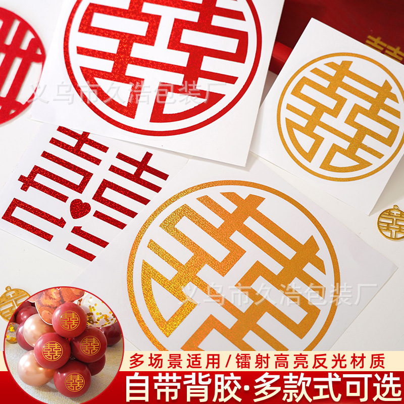 結婚式用の小さな「囍」の文字が付いた粘着ステッカー、キャビネットのドア、階段、結婚式の部屋の装飾、粘着剤付きの「囍」の文字が付いています。