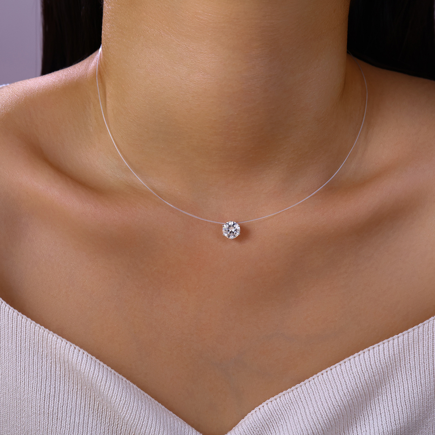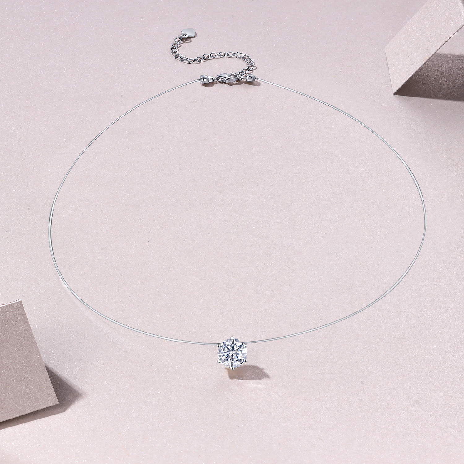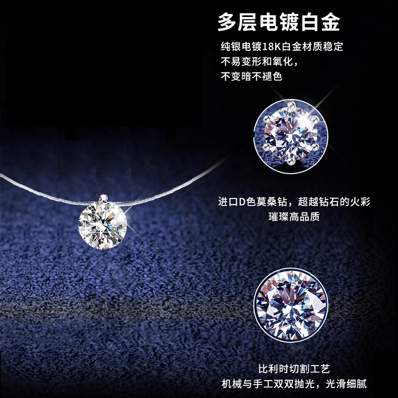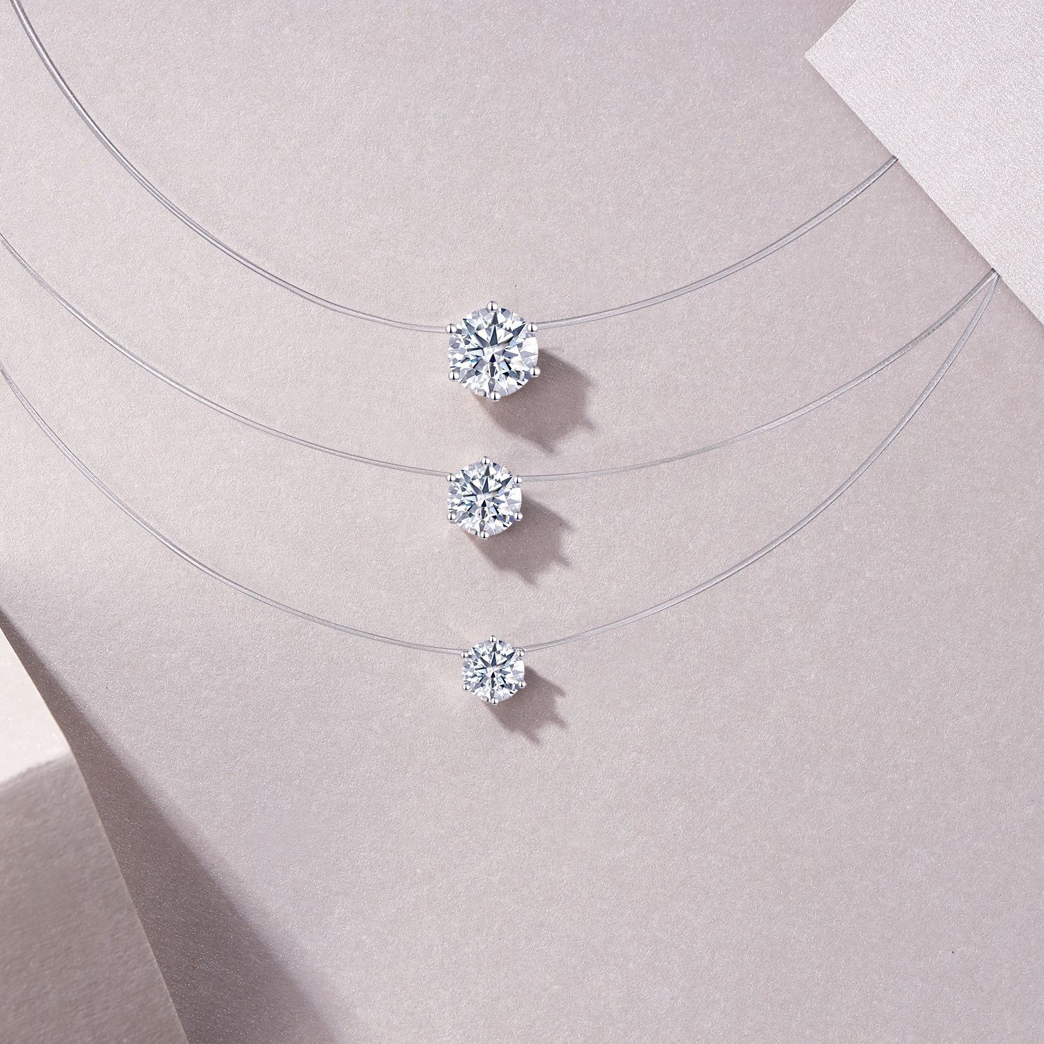 魚の涙,Douyin モアッサナイト 18K ホワイトゴールド目に見えない釣り糸ウォータードロップペンダント鎖骨チェーンシンプルな人魚の涙ネックレス女性用