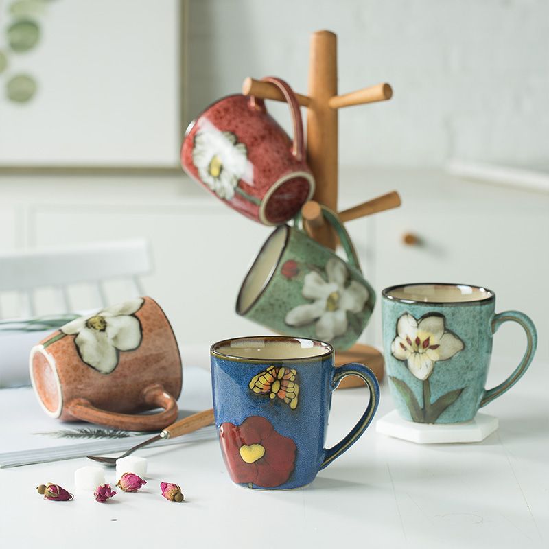 セラミックマグエンボス加工家庭用日本製セラミックマグカップルウォーターカップレトロな個性ガールズコーヒーカップ少々傷あり