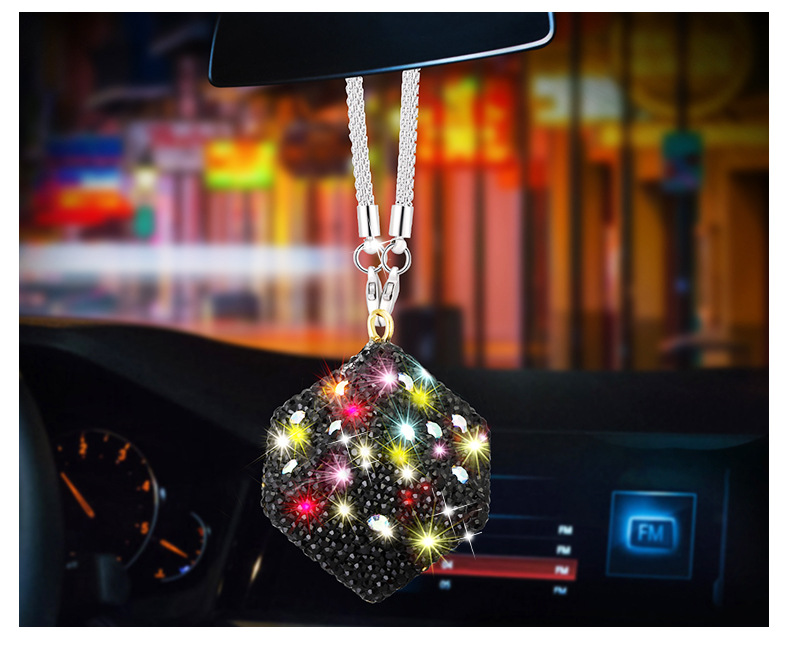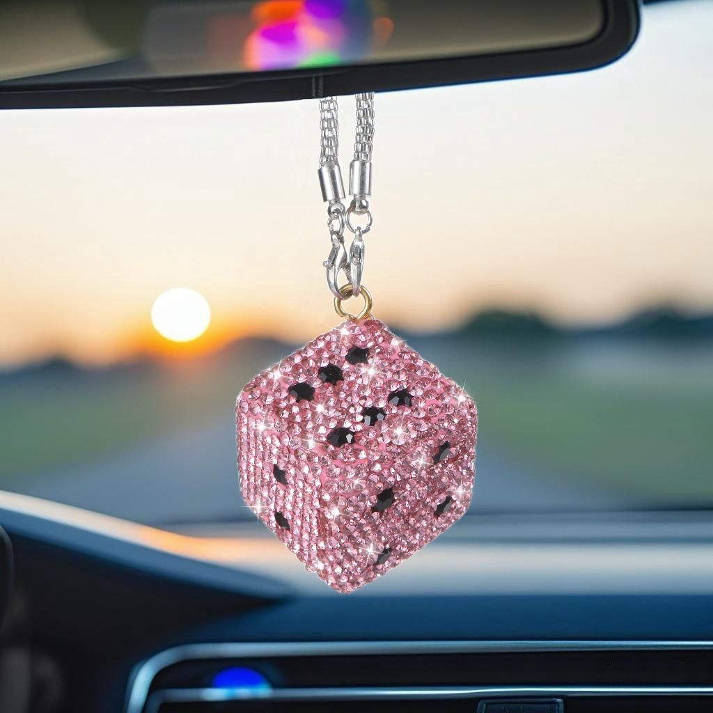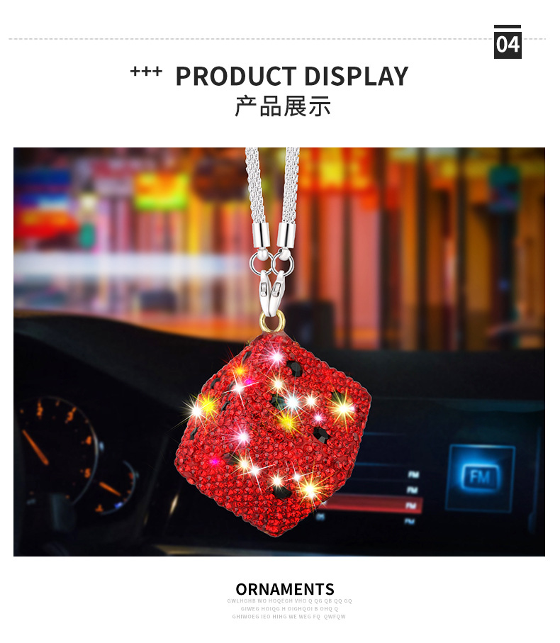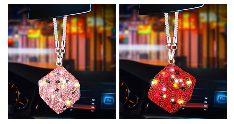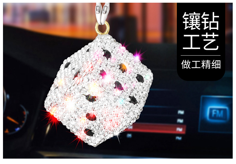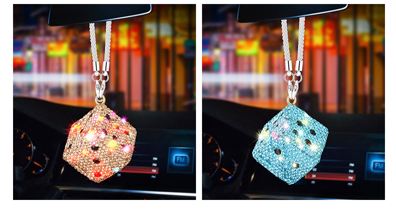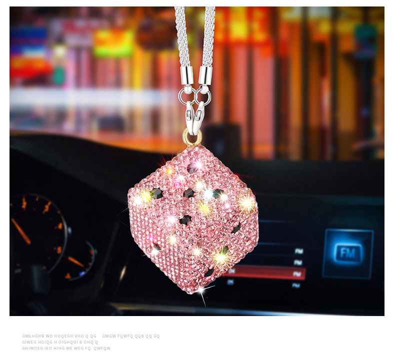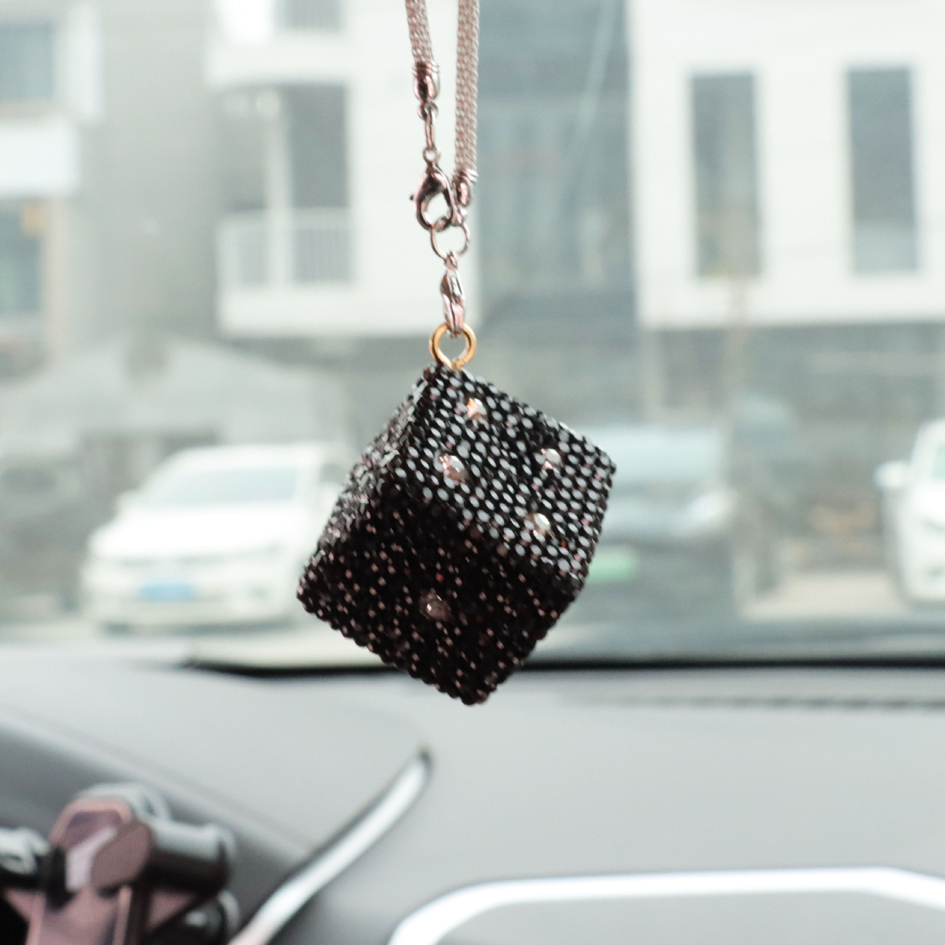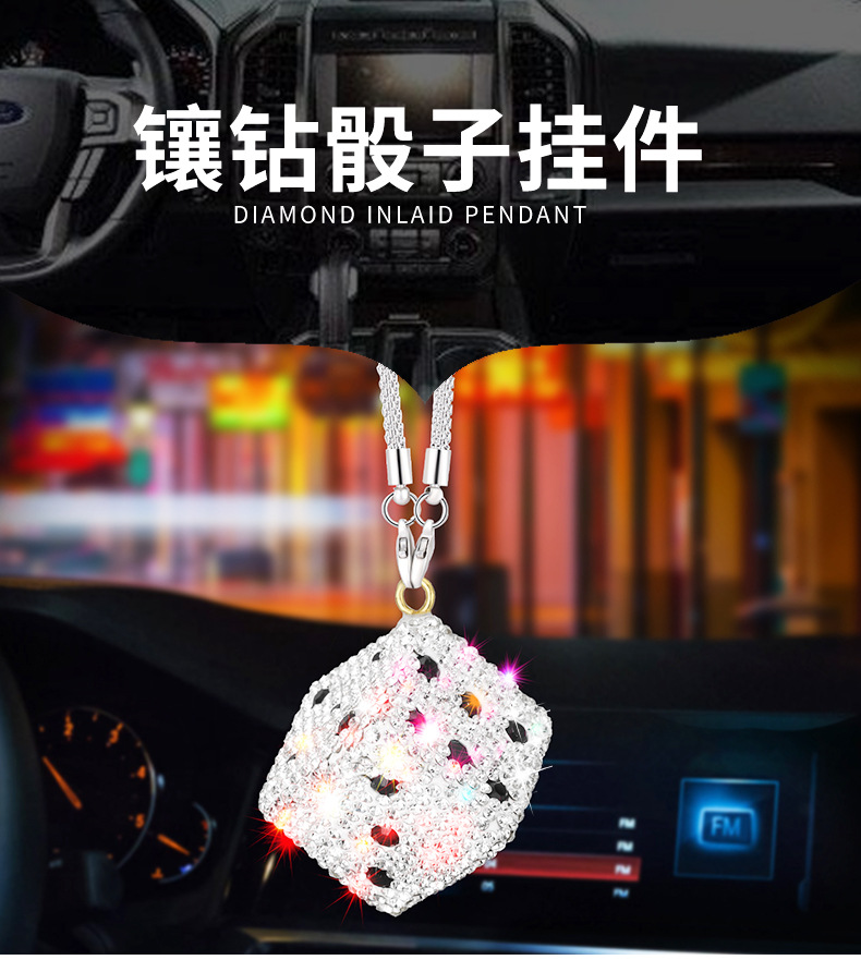 2025跨境热卖新款汽车挂件时尚镶嵌满钻骰子车后视镜挂饰