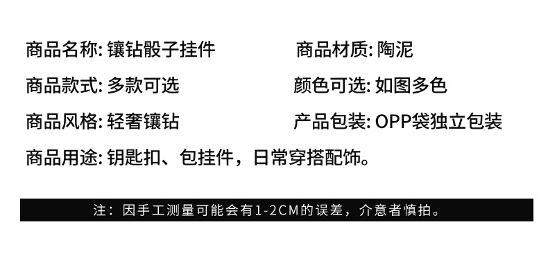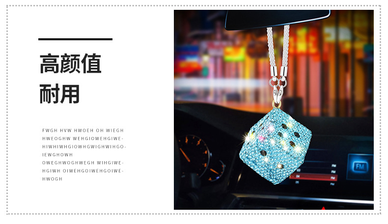 跨境热卖新款汽车挂件时尚镶嵌满钻骰子男女车后视镜挂饰