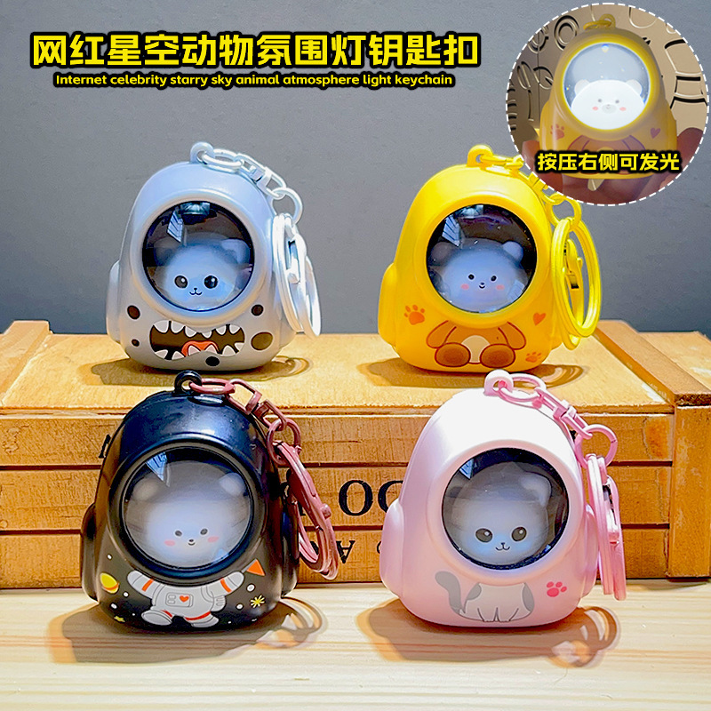 可爱小夜灯太空舱猫包钥匙扣氛围灯钥匙链包包挂件爪机氛围感发光