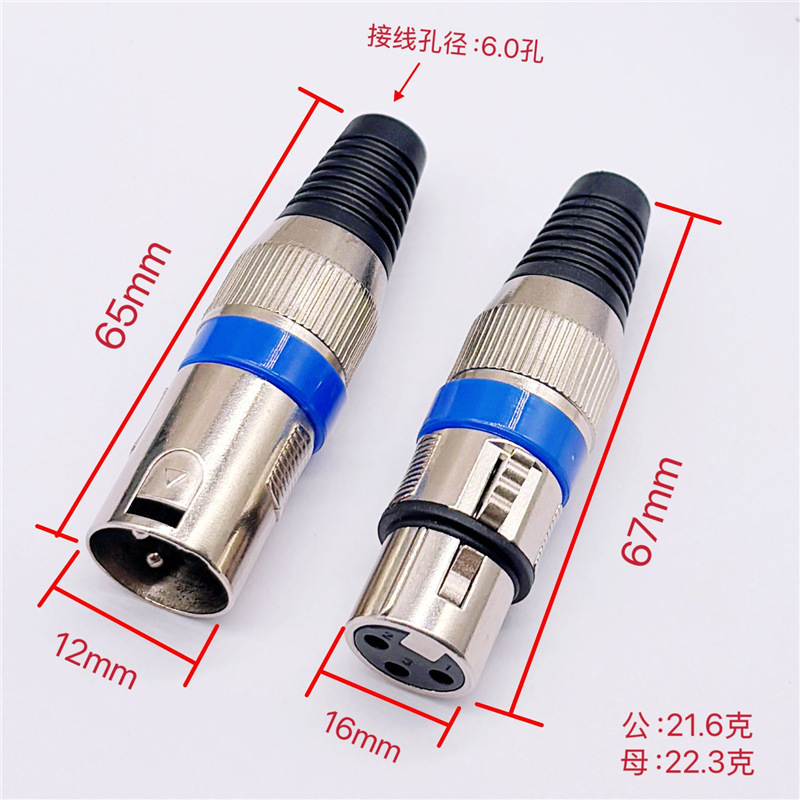 三芯卡侬头 麦克风话筒插头 XLR卡农公 三芯卡龙音频头 卡侬公母