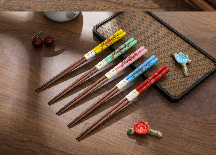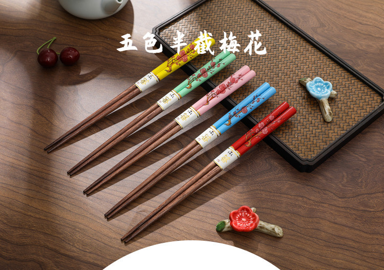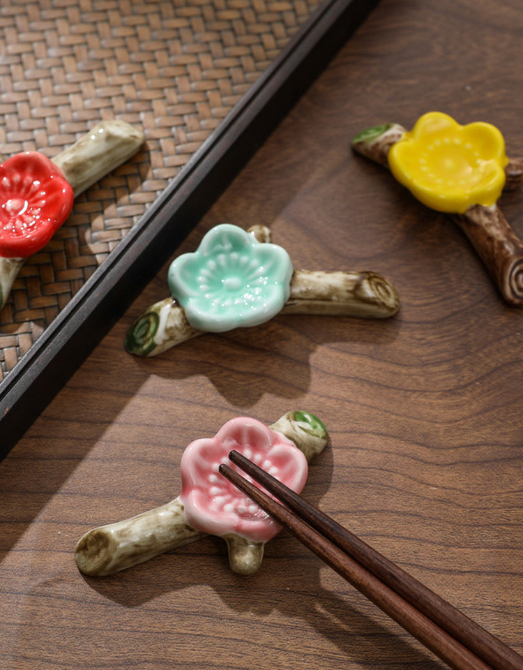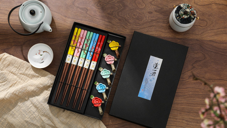 軽奢で高級感のある五膳五架、和風箸、一人一本箸、楽々分食、五色梅の花箸、箸置き