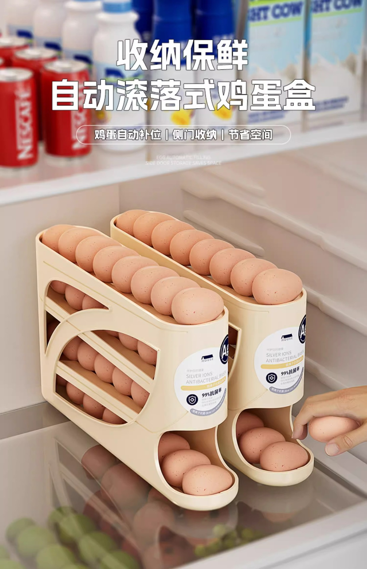 滚动鸡蛋收纳盒冰箱专用侧门装放鸡蛋的滚蛋鸡蛋托架食品级保鲜盒