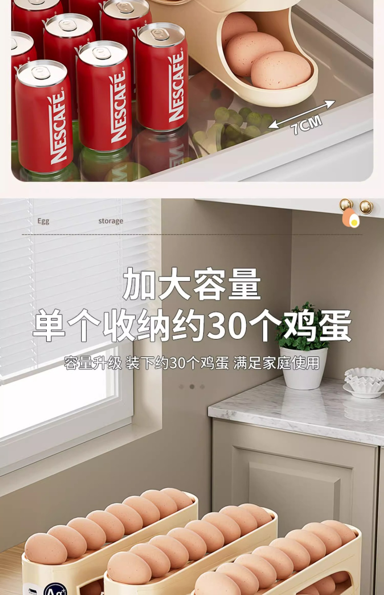 鸡蛋收纳盒滚动滑梯式鸡蛋纳盒冰箱用侧门鸡蛋盒用鸡蛋盒整理神器
