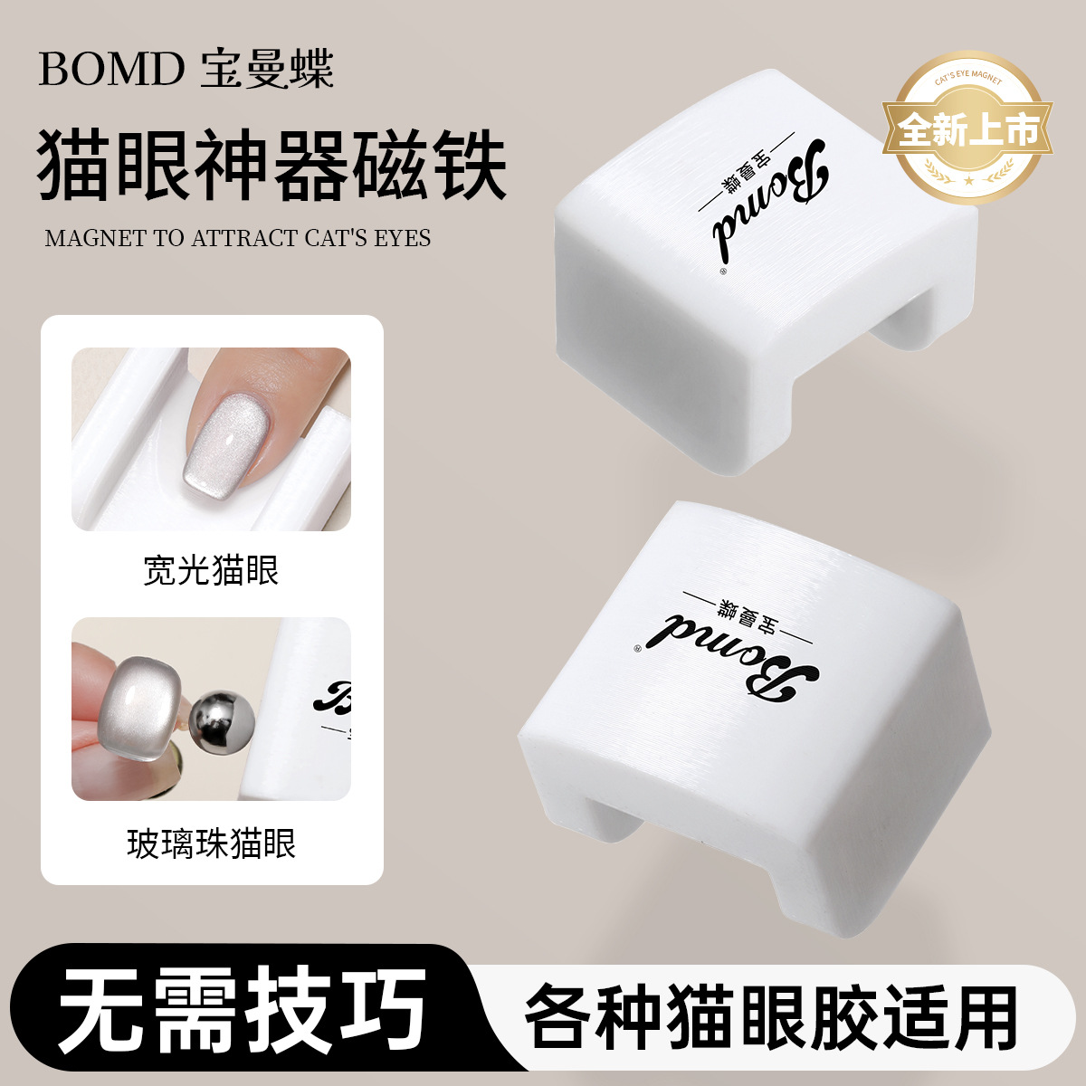 自动吸猫眼神器网红新款法式宽光玻璃珠子侧光美甲吸铁石强力磁铁