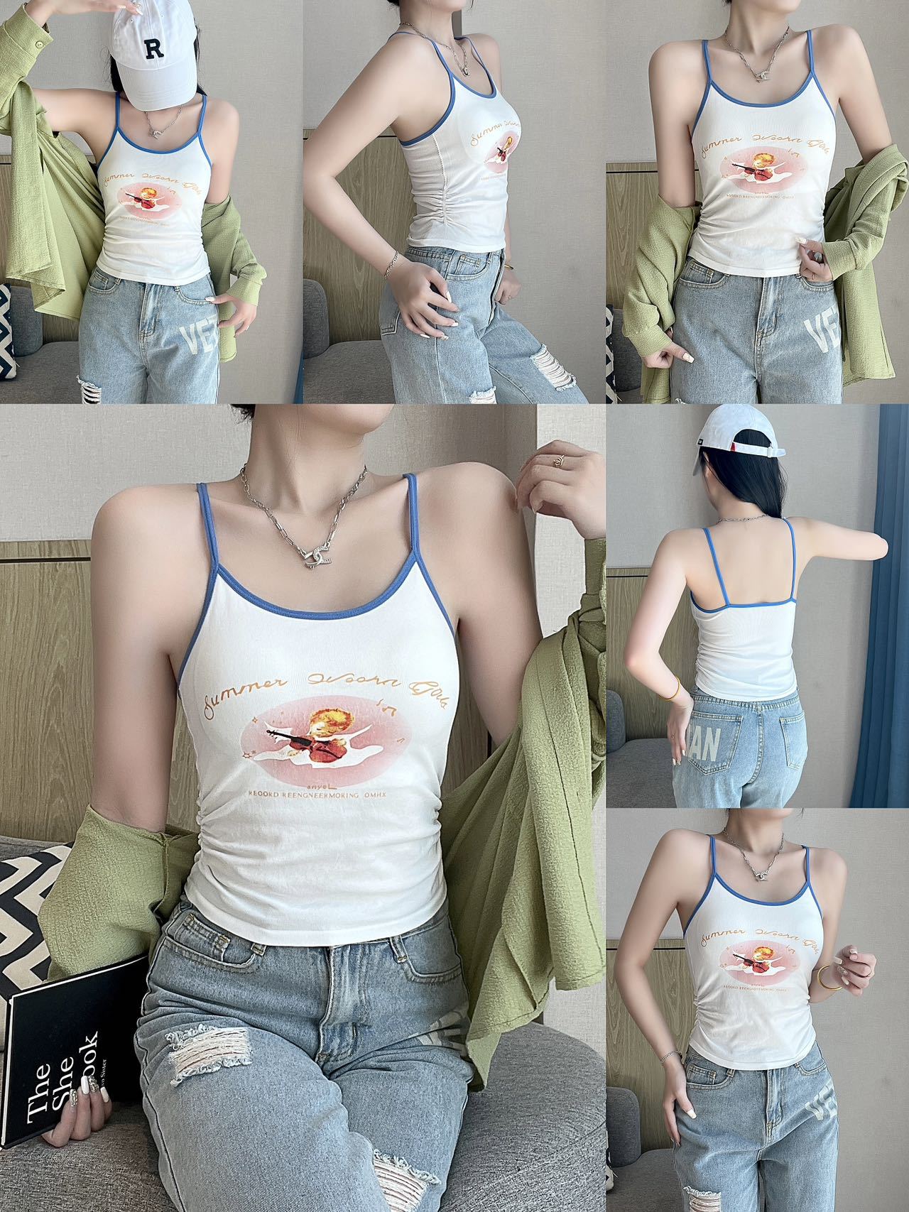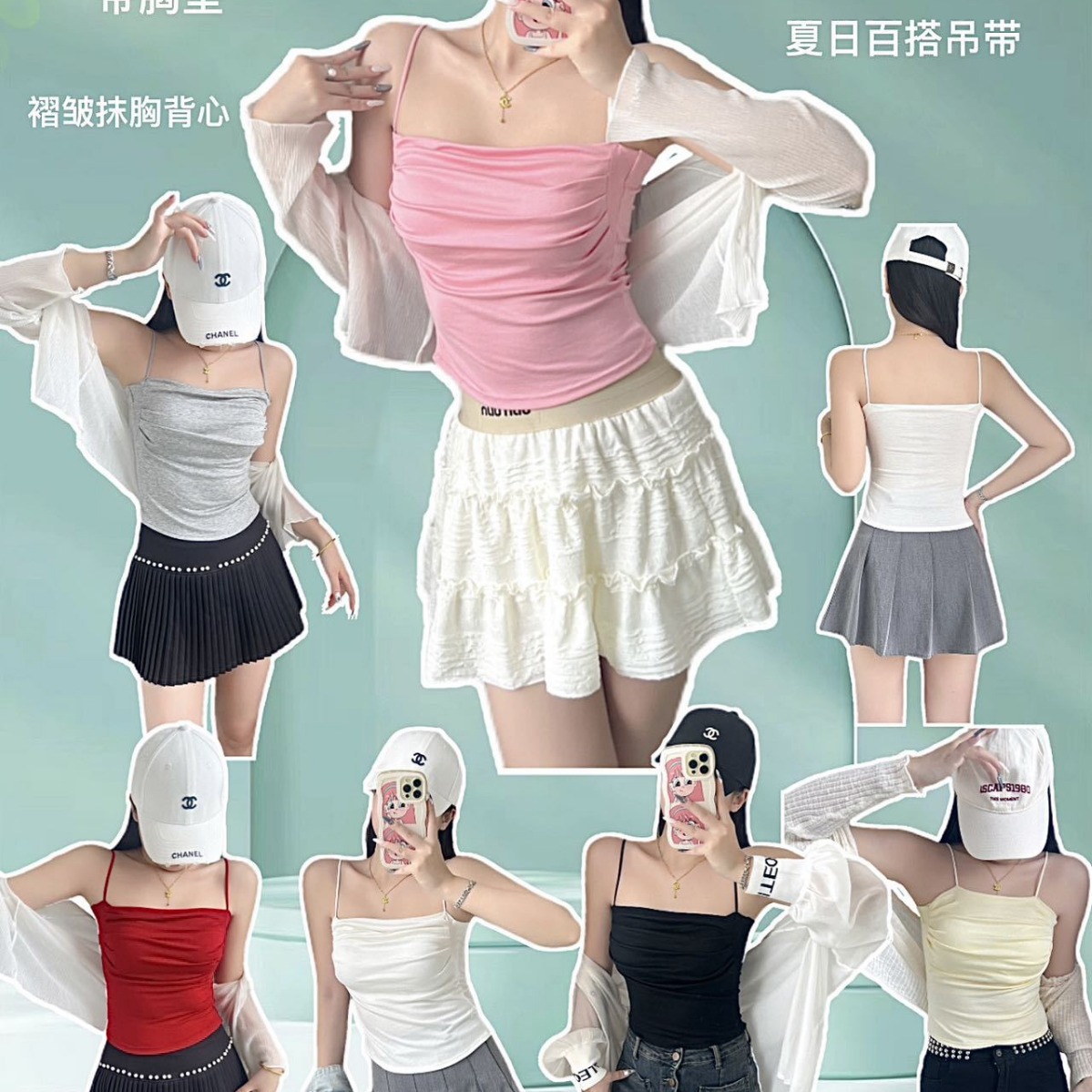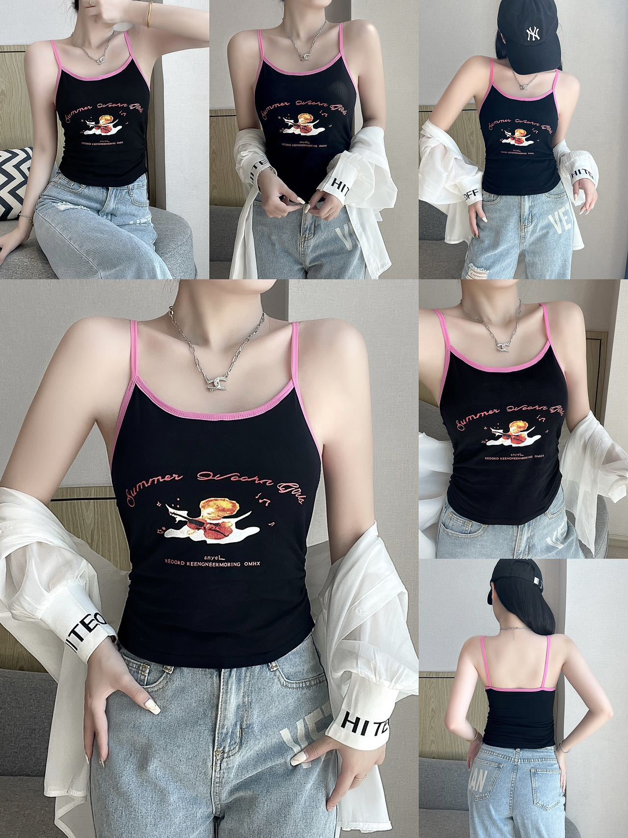 1822 #2025新型胸パッド付きレースストラップベスト女春夏修身ギャル上着首ストラップ